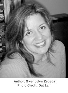 Gwendolyn Zepeda was born in Houston, Texas and attended the University of Texas at Austin. She was the first Latina blogger and began her writing career on the Web in 1997 as one of the founding writers of the entertainment site Television Without Pity. Since that time, Zepeda has published three critically acclaimed novels through Hachette, four award-winning children’s books through Arte Publico Press, a short-story collection, and two books of poems.