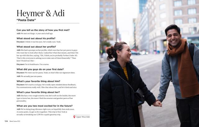 Beyond how they met, couples share their partner’s favorite traits, what they love to do together, and how they make their relationships work. Meet Cutes NYC is a celebration of modern-day love connections—across all ages, genders, and backgrounds.
