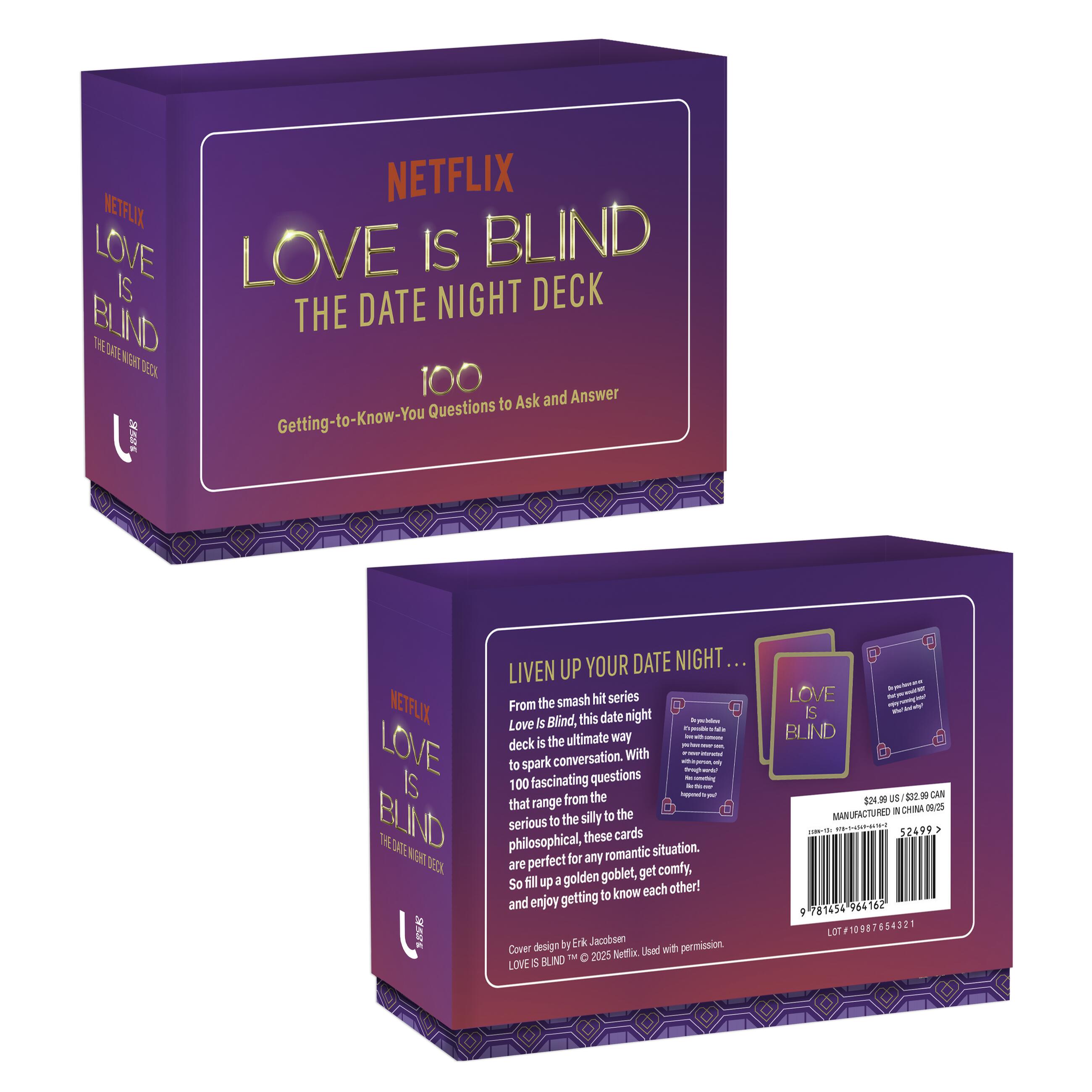 Whether you’ve just started dating or have been together for a long time, Love is Blind: The Date Night Deck is meant to uncover surprises, help couples feel closer and more aligned, and also prompt a few laughs—it’s a perfect activity or gift for engagements or weddings.