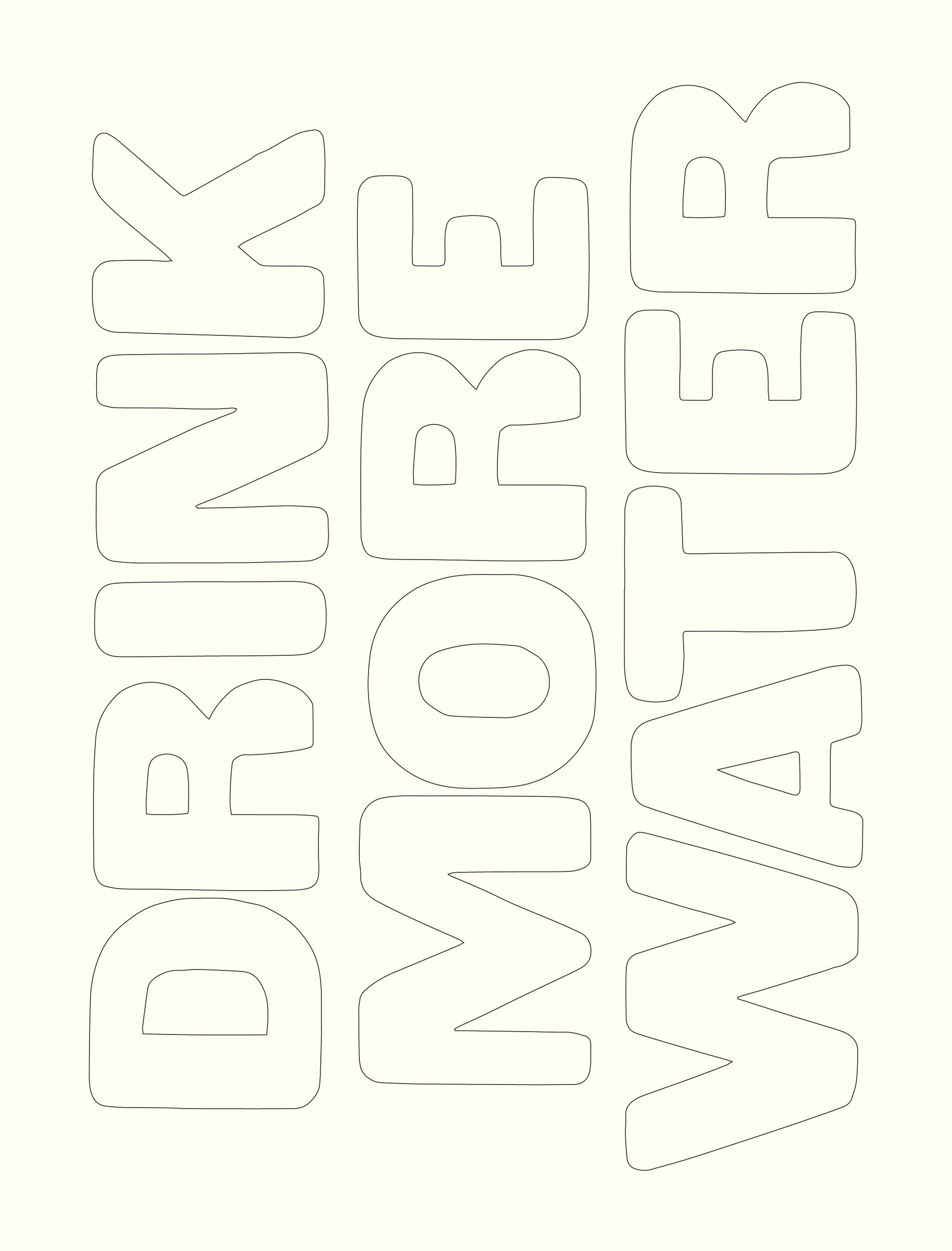 The posters feature large vintage block letter typography and a black-and-white palette, inviting the reader to decorate them however they choose—with colored pencils, tissue paper, markers, ink pens, watercolor, collage paper. (Suggested materials and examples of finished posters will be provided inside.)