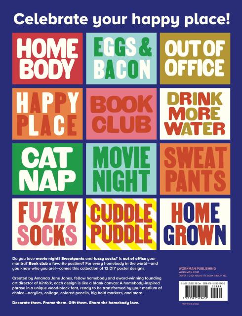 Celebrating the joyful coziness of home, here are 12 perforated foldout posters, each with a phrase or message that speaks directly to the homebody lifestyle: eggs & bacon, sweatpants, cat nap, book club, fuzzy socks, and more.