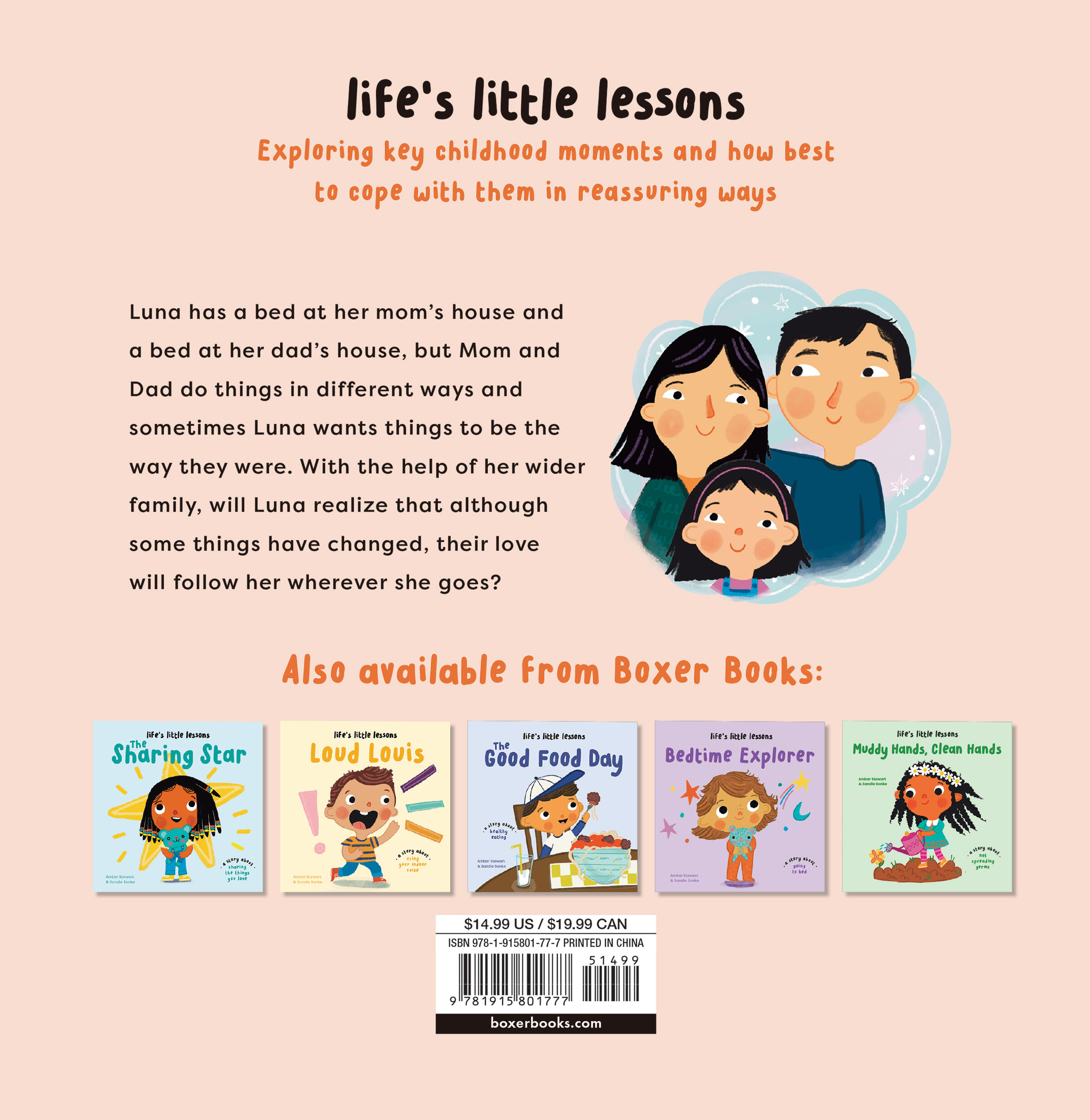 Luna’s Fabulous Family reassures those children experiencing family separations and divorce. It reinforces parental/child love—even though all families are different, and sometimes things change, love is constant.