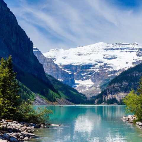 - Experience the Outdoors: Ride over the snow in a horse-drawn sleigh or through the sky in a mountain gondola. Follow the vast network of hiking trails along glacial valleys and discover alpine lakes and spectacular vistas. Soak in a natural hot spring, treat yourself at a luxurious mountain resort, or discover the park’s history at one of Banff’s excellent museums. Grab a cup of coffee at a local shop, or experience the town’s classic après-ski nightlife