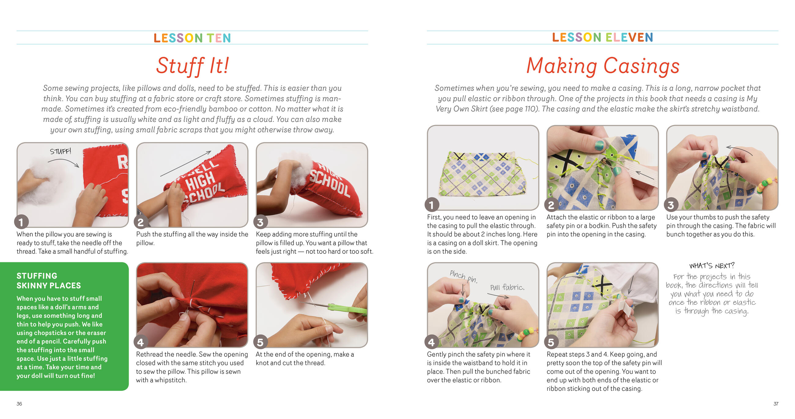 This inspiring guide includes 21 fun sewing projects for children ages 5 and up. With easy-to-follow illustrated instructions and cut-out patterns, young crafters will quickly be sewing up colorful pillows, potholders, dolls, blankets, and more. These kid-tested projects require only minimal supervision and most can be made using simple hand stitches, so no sewing machine is required. With plenty of encouragement and helpful tips, Sewing School ® helps young sewers develop their skills while sparking a passion that will last a lifetime.