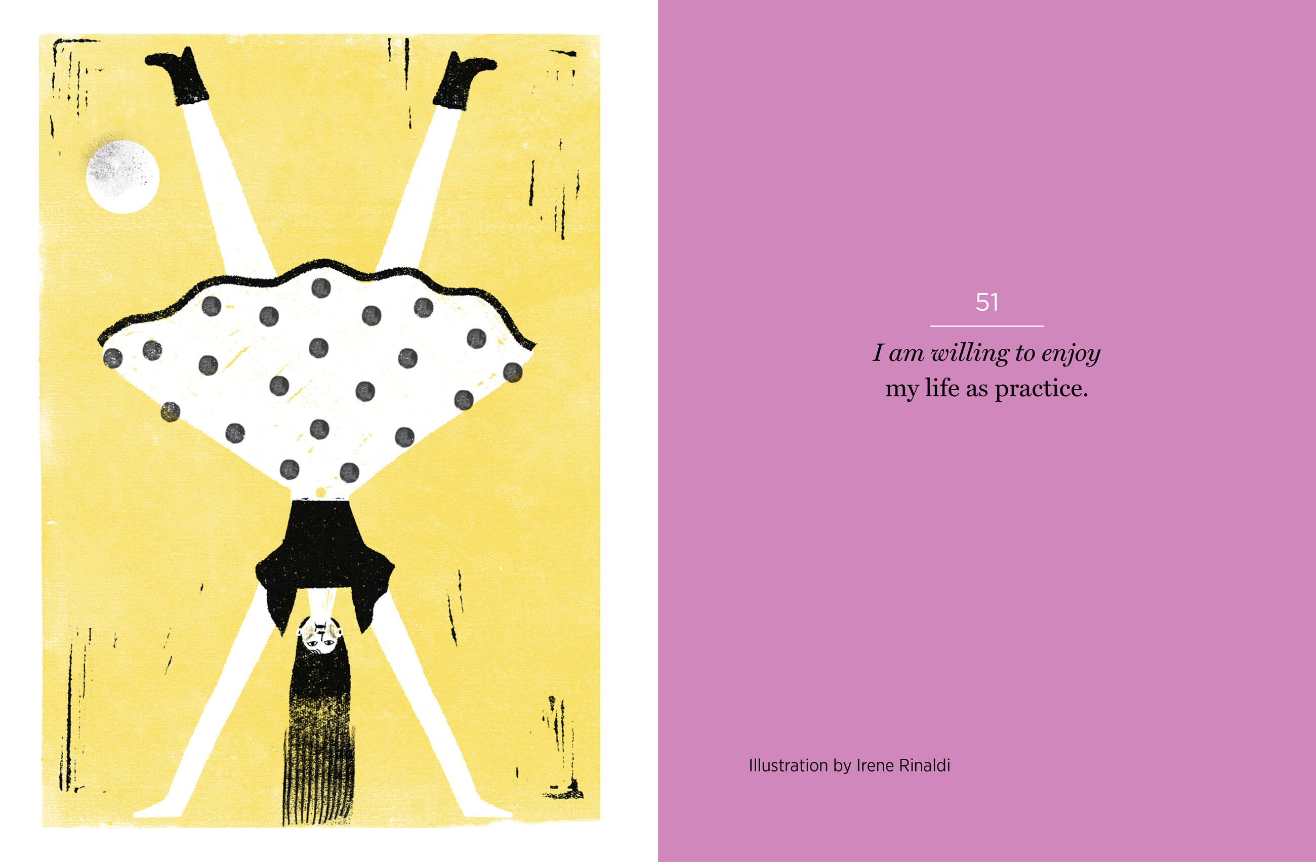 “For all who are curious, willing, and open to working with our minds, Ani Trime has created the perfect vehicle to move, inspire, and guide us. These weekly affirmations, accompanied by such cool and unique illustrations, remind us simply yet powerfully that the choice to be free is ours. So, please feed your mind and keep this wonderful book next to your cushion or bedside, and most importantly, in your heart.” — Steve Buscemi, actor