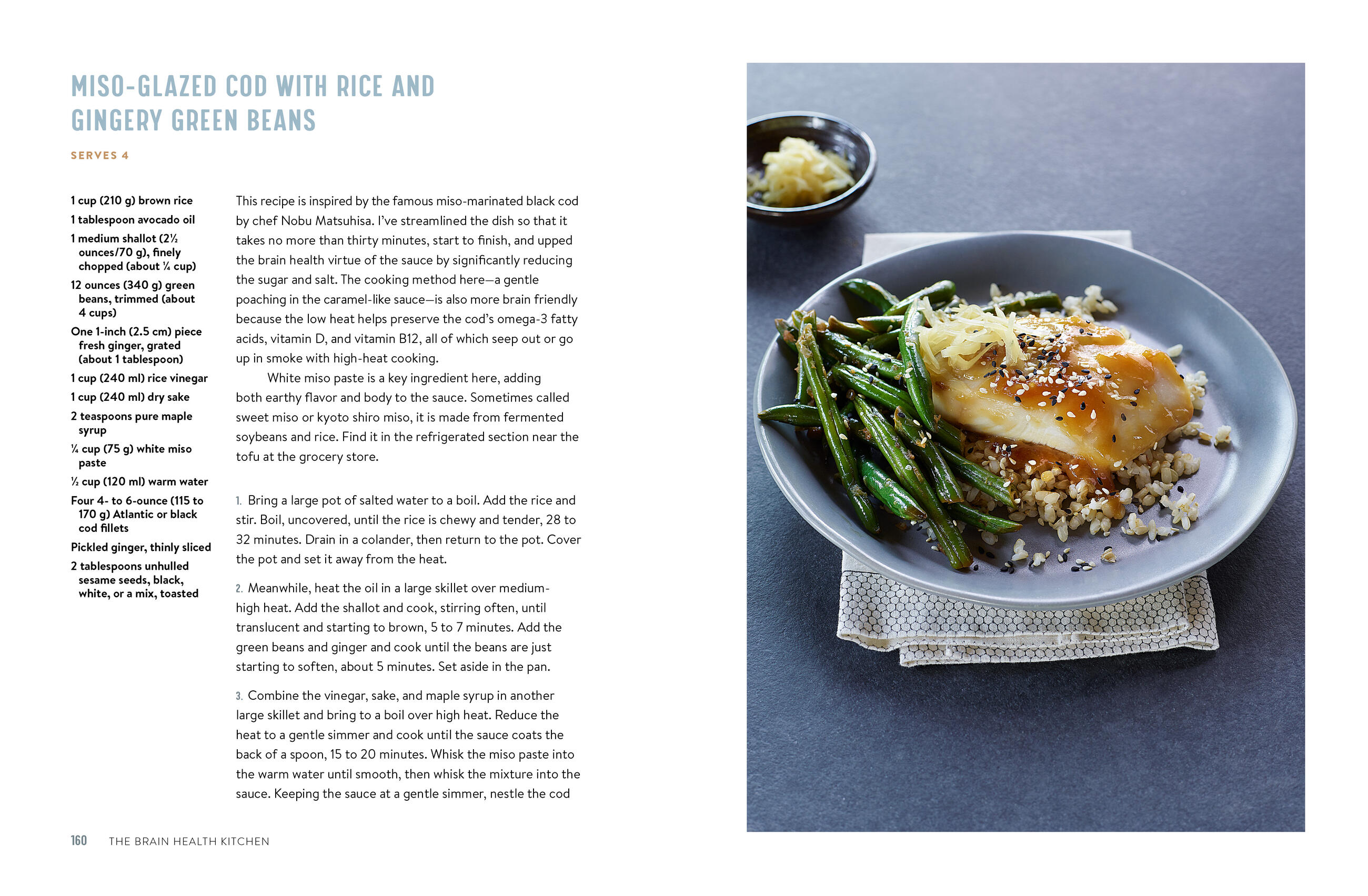 From Caramelized Apple and Quinoa Pancakes for breakfast to Mushroom and White Bean Socca for lunch to dinners like Miso-Glazed Cod with Rice and Gingery Green Beans and Marinated Steak with Warm Kale Salad and Sweet Potatoes, here are dishes that are simply delicious, regardless of their health-boosting effects. Same with the desserts, like Coffee, Date, and Oat Bars.