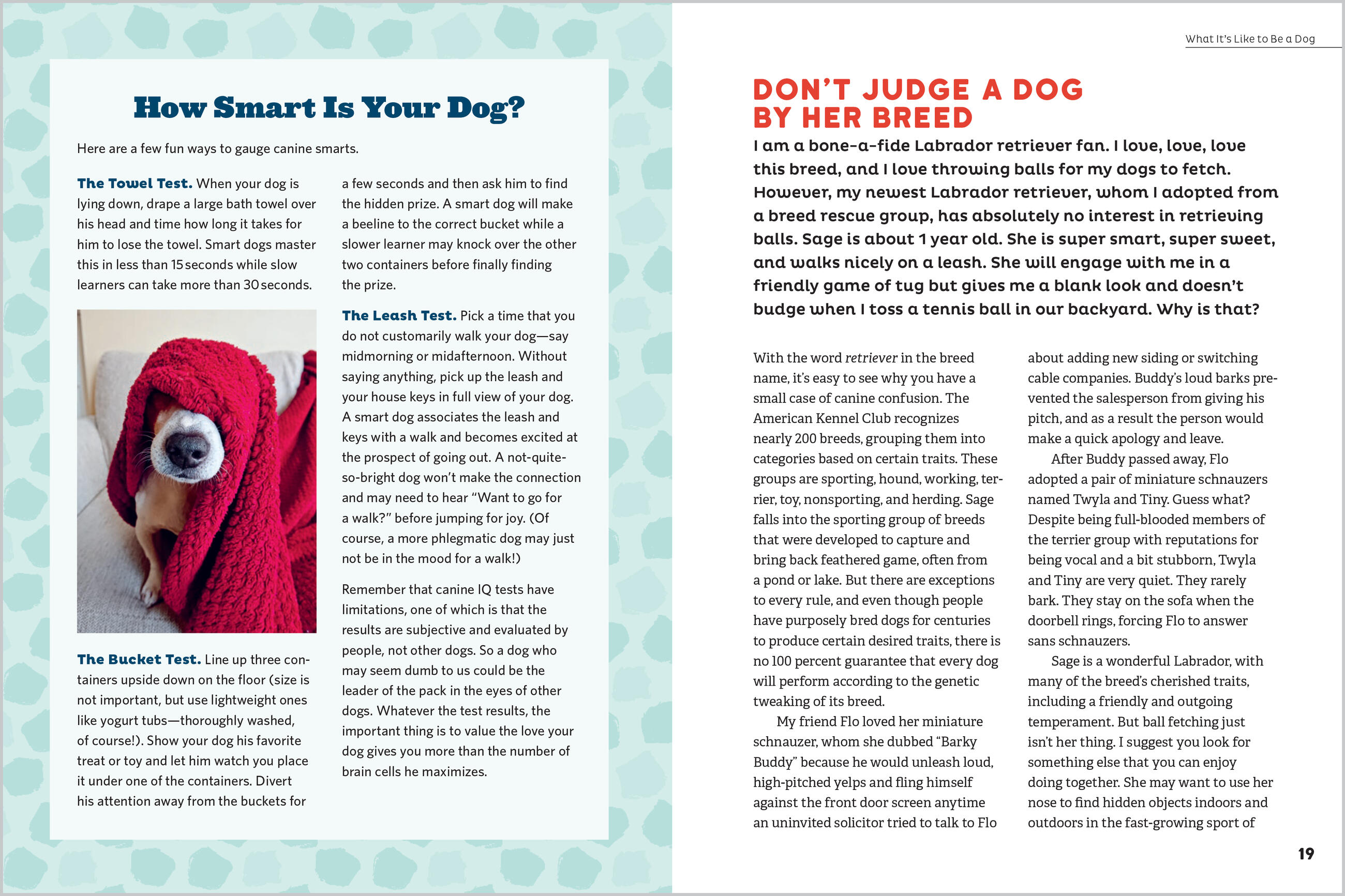 “Arden Moore gets dogs and their humans. She knows how to help dog lovers in a clear, easy-to-understand and entertaining way, thanks to her years of experience in writing and talking dog behavior with too many kids, adults, and pups to count. You'll be sitting four on the floor with this book!” — Melissa L Kauffman, Executive Editor, Dogster