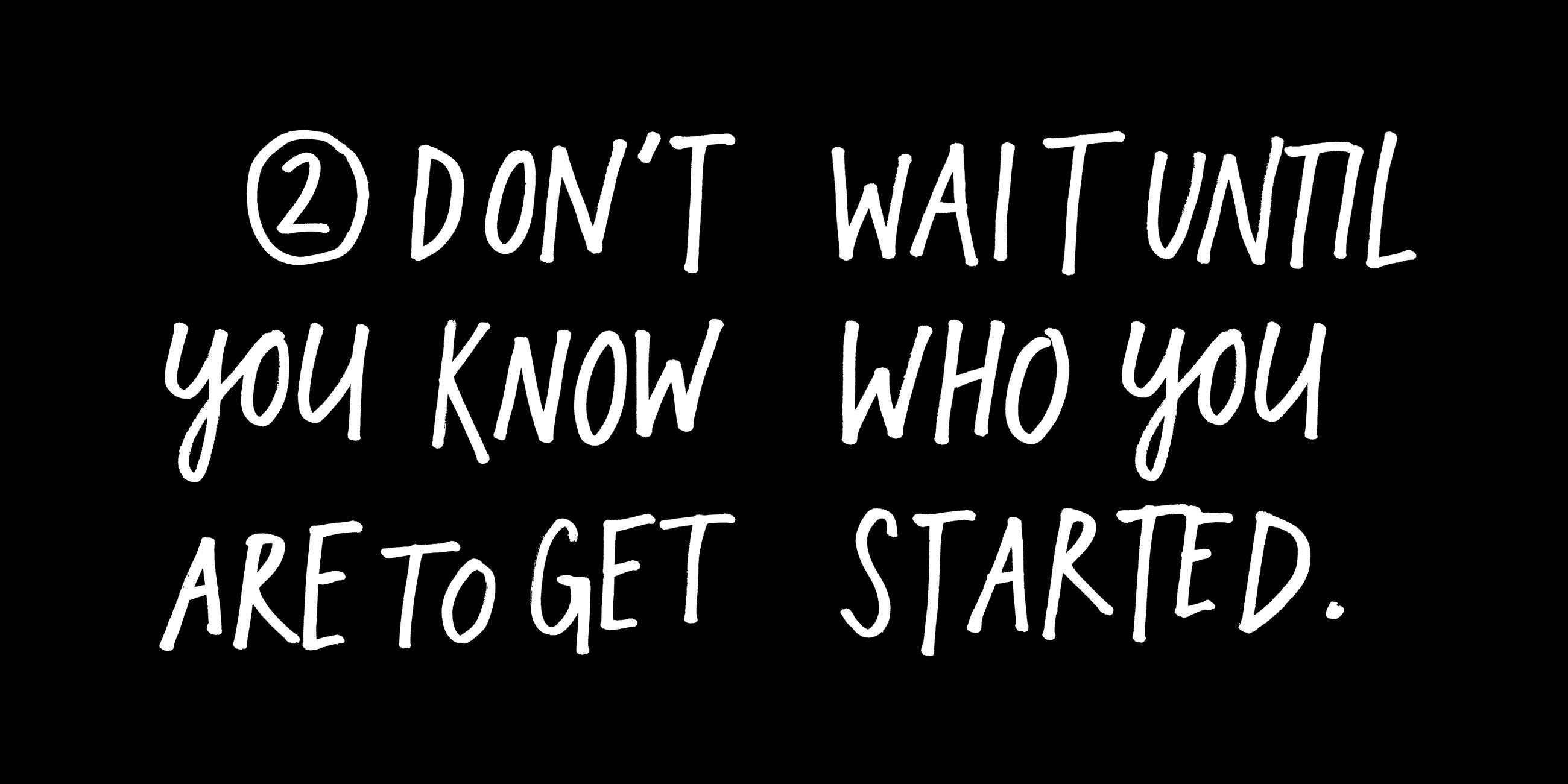 - Don’t wait until you know who you are to get started.