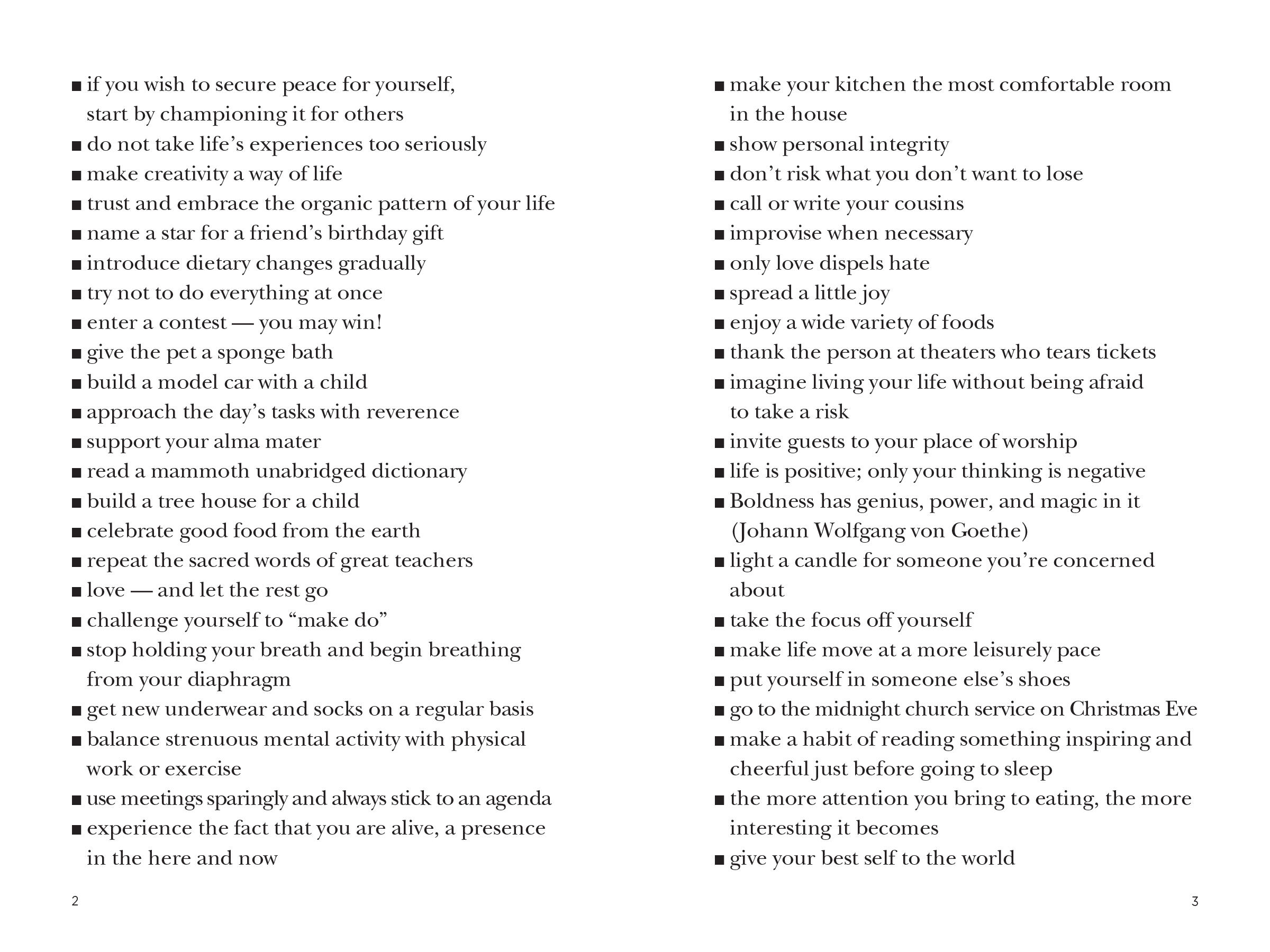Created by Barbara Ann Kipfer, the author whose books-including 14,000 Things to Be Happy About, 8,789 Words of Wisdom, and The Wish List-have 1.2 million copies in print, Instant Karma is a compulsive, densely packed, chunky little book of 10,000 or so suggestions, wishes, thoughts, and the occasional heartening quotation.