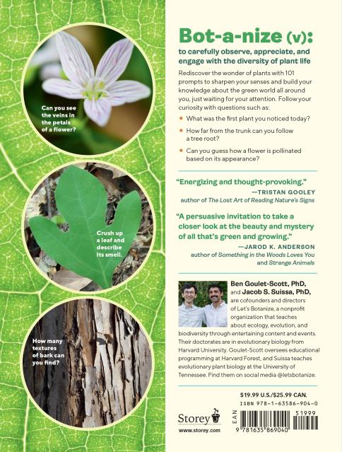 Let’s Botanize! is a guide to learning about and understanding the world of plants, a hobby that can ease stress, bring joy, and deepen your connection with the incredible diversity of life all around you. With easy entry points and lush photography, the 101 prompts inspire readers to engage with plant life meaningfully each day by observing the parts, patterns, and processes that make plants so amazing. Examine a bud at the tip of a branch—does it have hairs or scales? What is the most brightly colored plant part you can find that is not a flower or a fruit? Listen to the plants—what sounds do you hear them making? Follow the prompts on dedicated walks in the woods, on your sidewalk, on your commute to work, or even in your kitchen! Revisit prompts at different times of year, in different countries, climates, and ecosystems. As you learn more, you may even find that revisiting the same prompt and the same tree can provide a completely different perspective as you become more familiar with the wonderful world of plants.