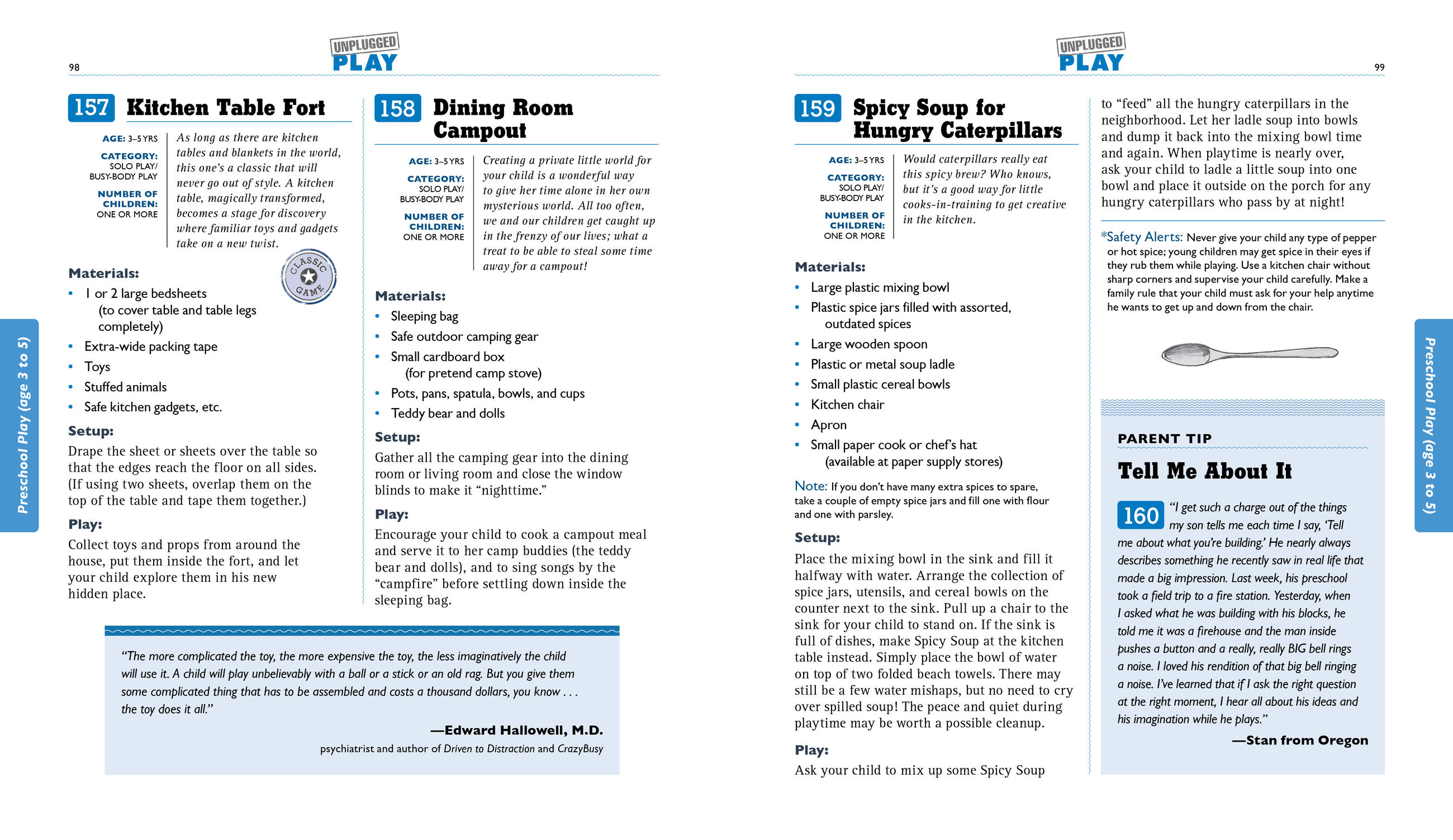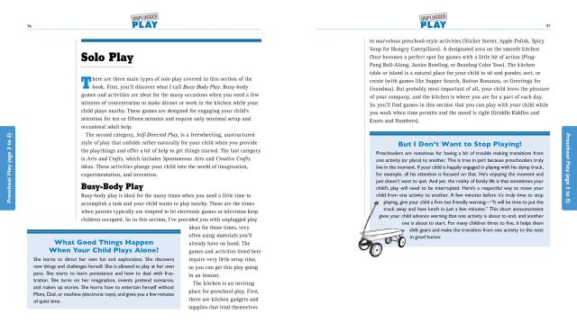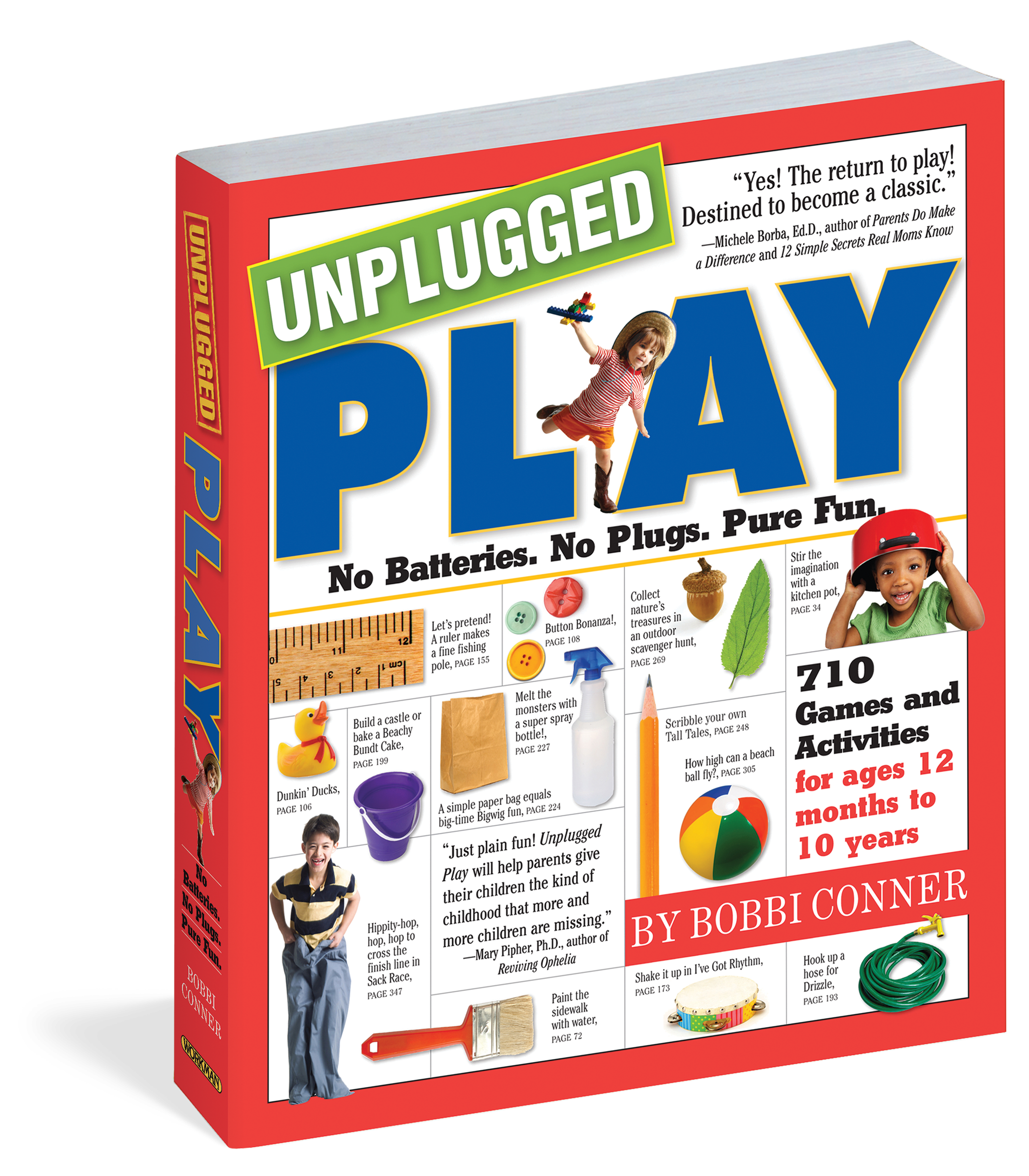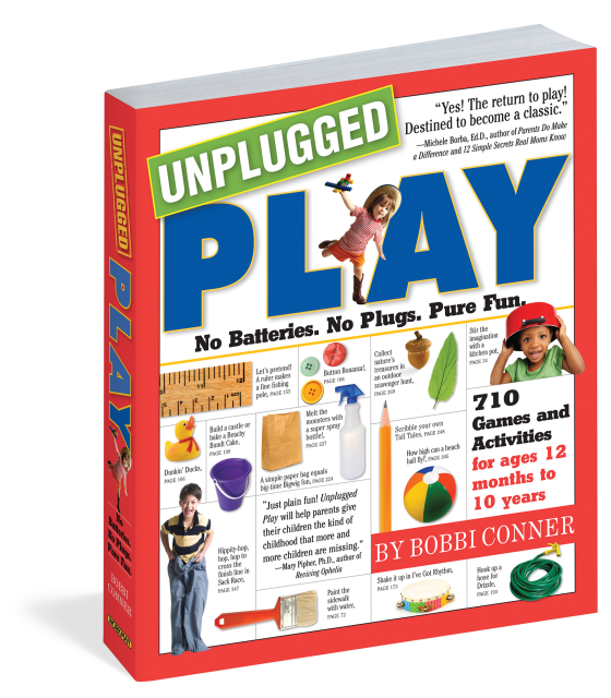 From the joy of smearing glue on paper to the screaming delight of a bubble-blowing relay, kids love to play. In fact, it’s every kid’s built-in tool for experiencing the world at large. A parent-friendly encyclopedia, UNPLUGGED PLAY (“A wonderful guide,” says Daniel Goleman) offers hundreds and hundreds of battery-free, screen-free, chirp-and-beep-free games and fun variations that stretch the imagination, spark creativity, building strong bodies, and forge deep friendships…and keep kids busy at the table while mom or dad makes dinner.