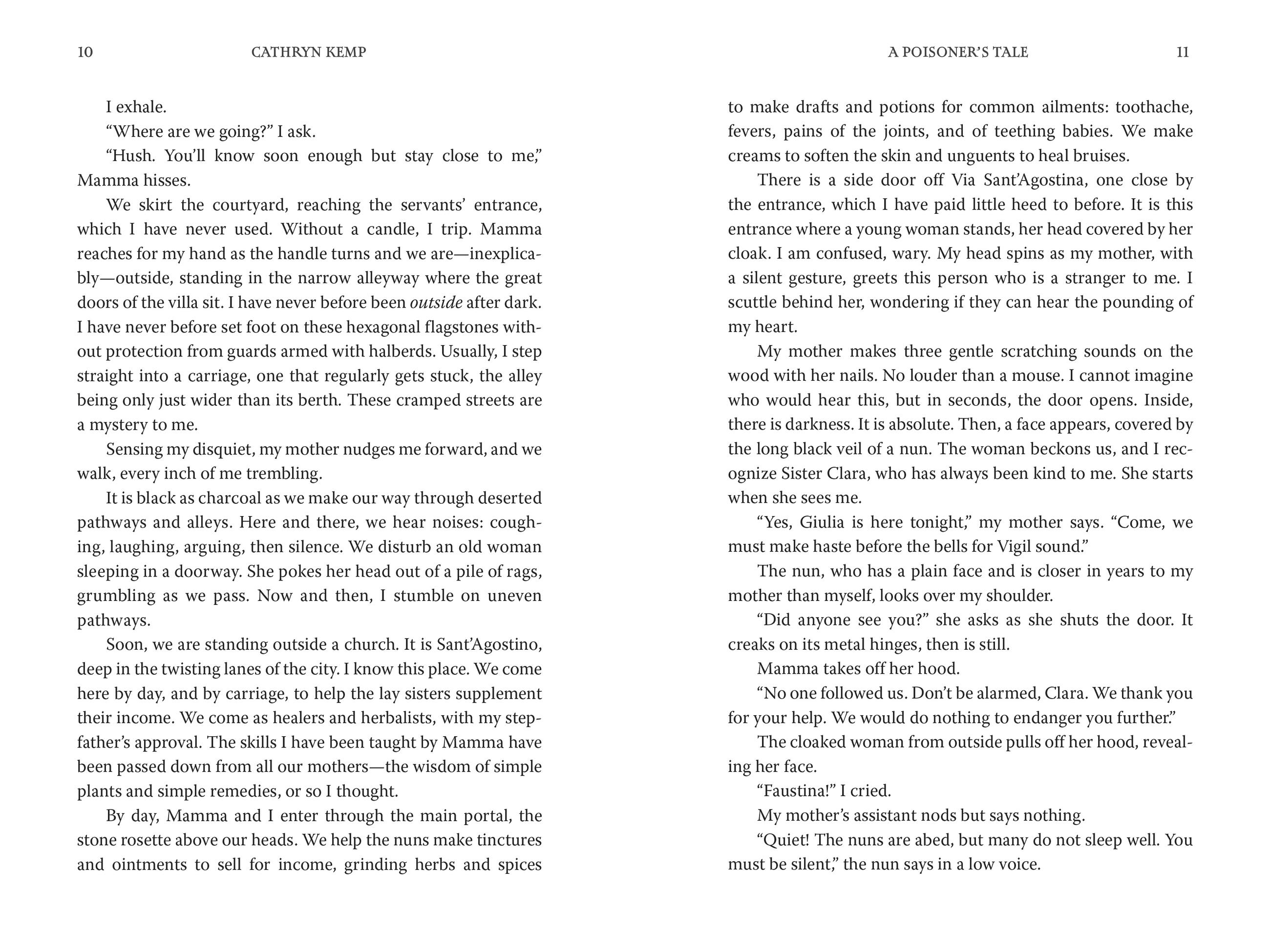 Rome, 1656: Years later, within the alleys and shadows of the Eternal City, Giulia forms her own circle of female poisoners, who work together under the guise of an apothecary shop to sell poison to women in need.