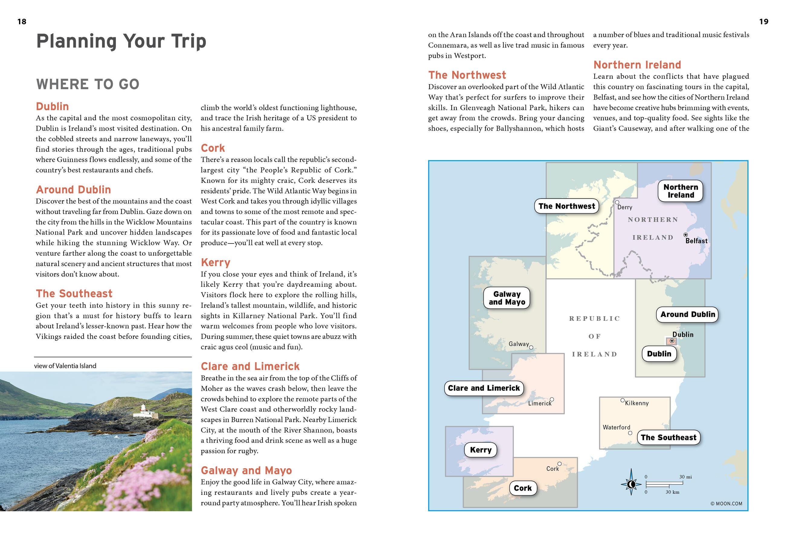 - Focused coverage of Dublin and its surroundings, the Southeast, Cork, Kerry, Clare and Limerick, Galway and Mayo, the Northwest, and Northern Ireland