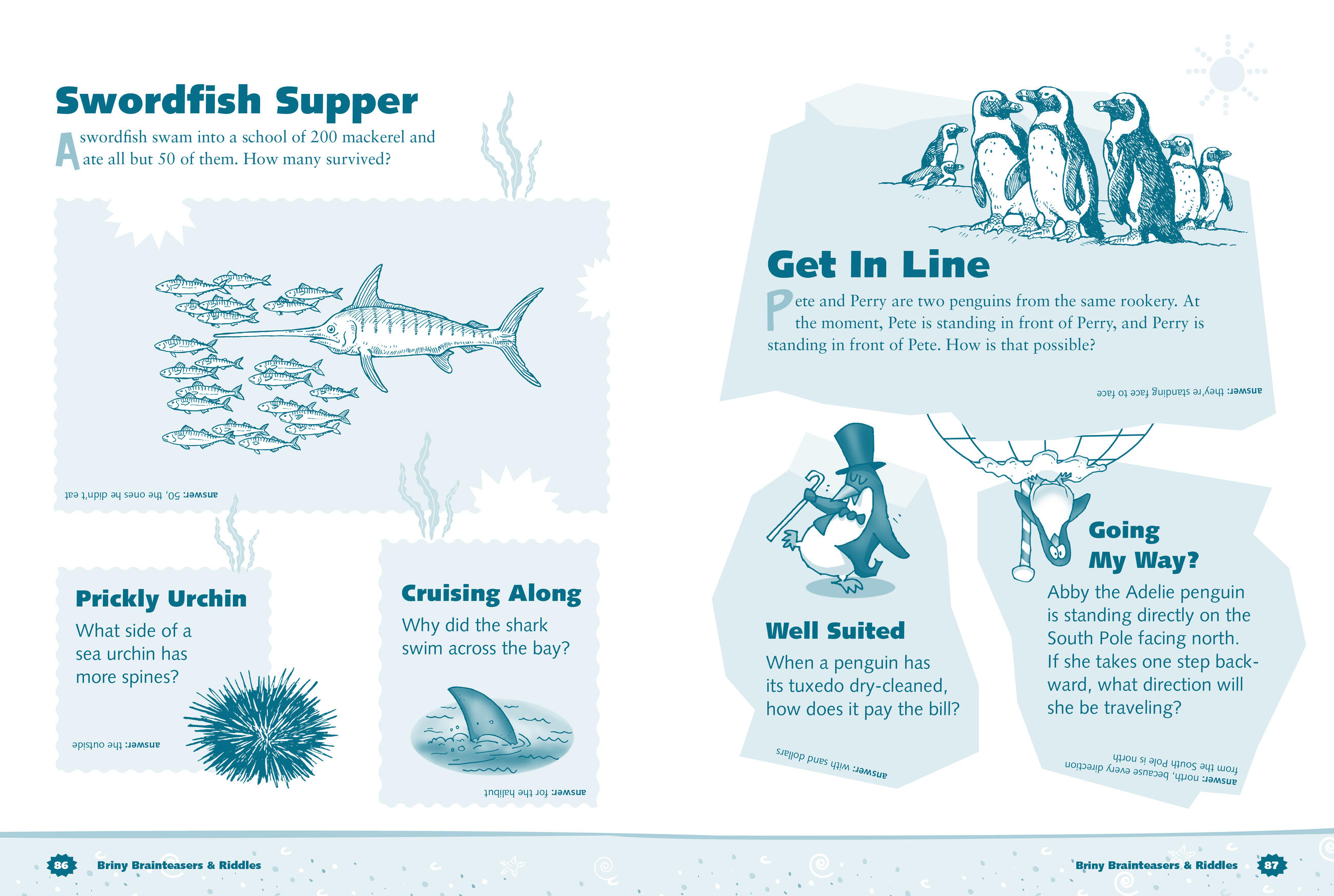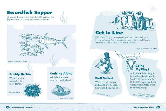 Kids will have hours of fun learning about their favorite sea creatures and ocean phenomena as they work their way through 100 puzzles, games, brainteasers, and jokes in this sea-based activity book. Lead a clownfish through a coral maze; determine which oyster is hiding the pearl; and figure out why sharks are known as lemons, manatees are considered cows, and barbers are simply called fish. It’s a guaranteed whale of a good time!