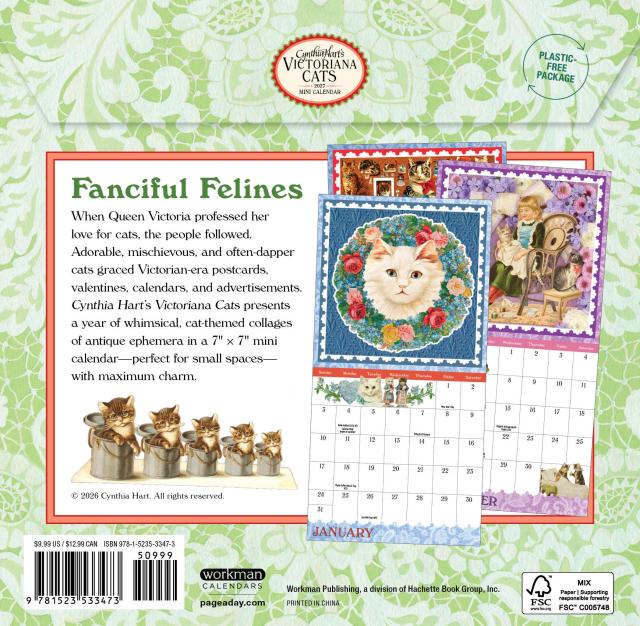 - VICTORIAN CHARM: When Queen Victoria professed her love for cats, the people followed. This mini version of Cynthia Hart’s beloved Victoriana Wall Calendar celebrates the Victorian love of cats with images from postcards, valentines, magazines, and more.