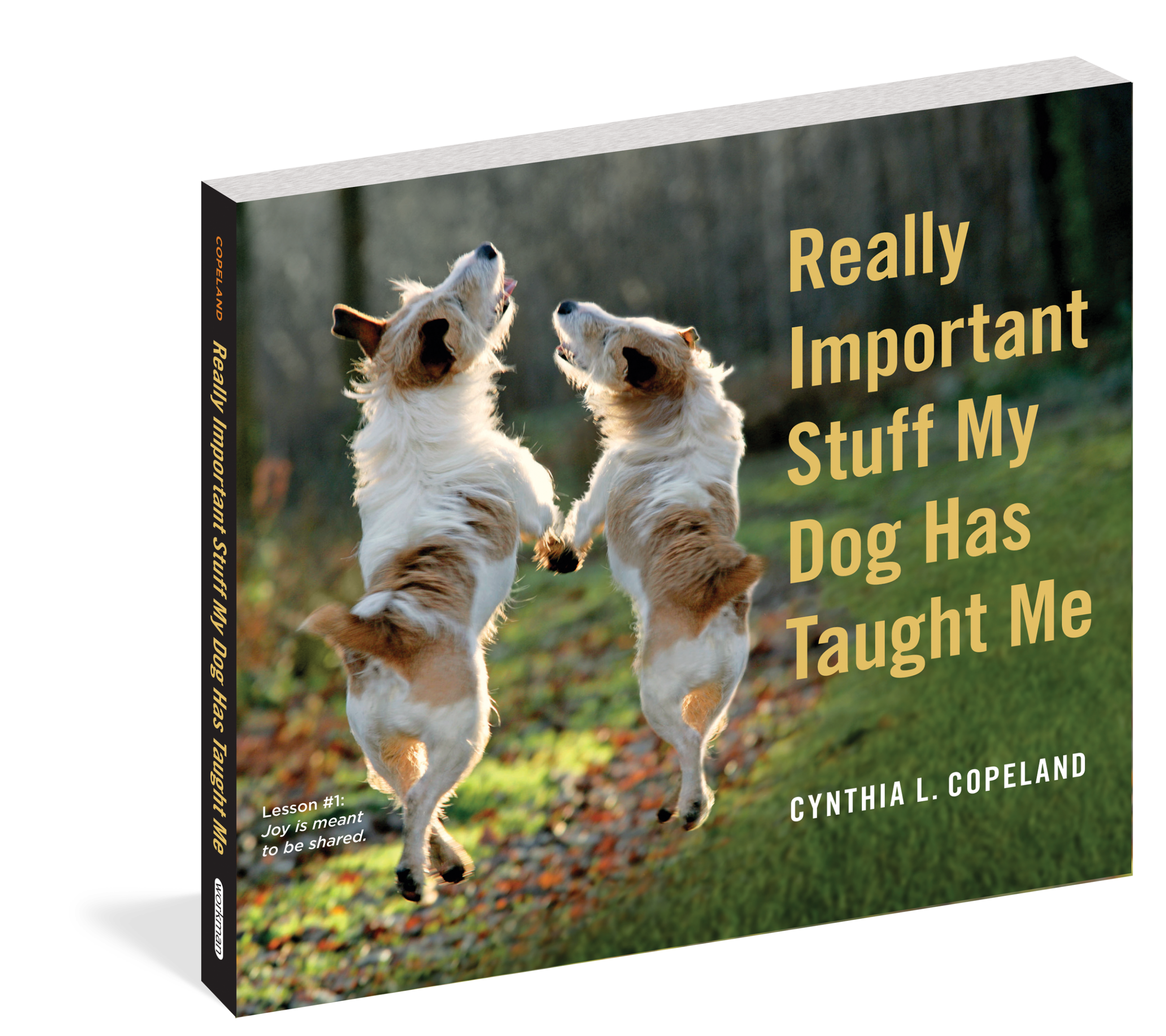 Cynthia L. Copeland has a gift for discovering those sorts of simple, timeless lessons. She did it when her children were younger with Really Important Stuff My Kids Have Taught Me. Now she distills all-new wisdom from her lifelong love of dogs. Really Important Stuff My Dog Has Taught Me is tender, funny, warm, and utterly inspiring. Pairing an irresistible photograph with just the right sentiment, every page delivers a life lesson that appeals as much to our hearts as our minds. It reminds us again and again of what’s important, like love: “Be there when others need you.” Compassion: “Even the smallest act of kindness matters.” Perseverance: “Keep going until you find your way home.” A healthy sense of self: “Make it squeak until someone pays attention.” Living in the present moment: “Scratch where it itches, when it itches.” And that happiness is a choice: “Leap higher than you have to.”
