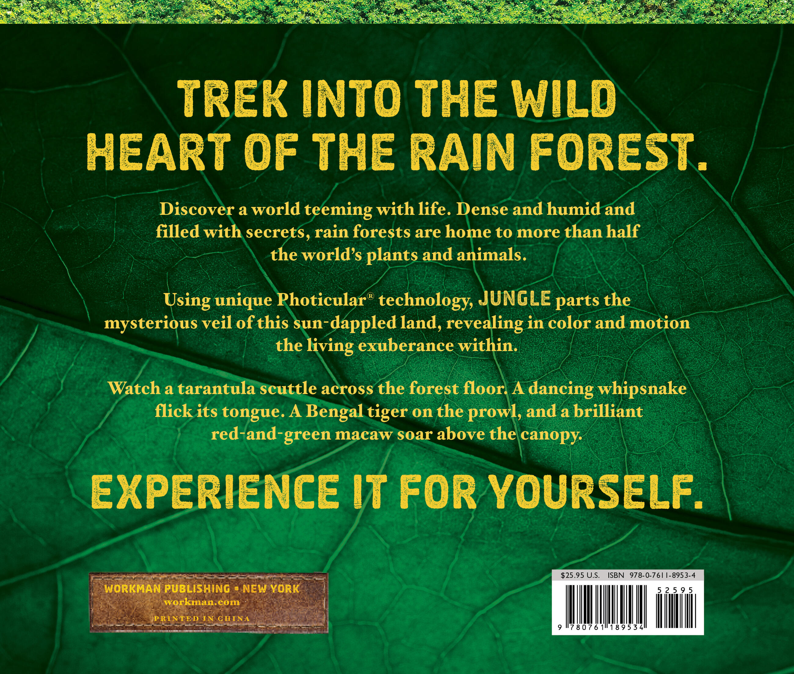Discover a world teeming with life. Dense and humid and filled with secrets, rain forests are home to more than half the world’s plants and animals. Using Photicular technology—an innovative lenticular-based technology that uses precision sliding lenses and four-color video imagery—each image is like a 3D movie on the page, delivering a rich, fluid, immersive visual experience. Jungle parts the mysterious veil of this sun-dappled land, revealing in color and motion the living exuberance within.