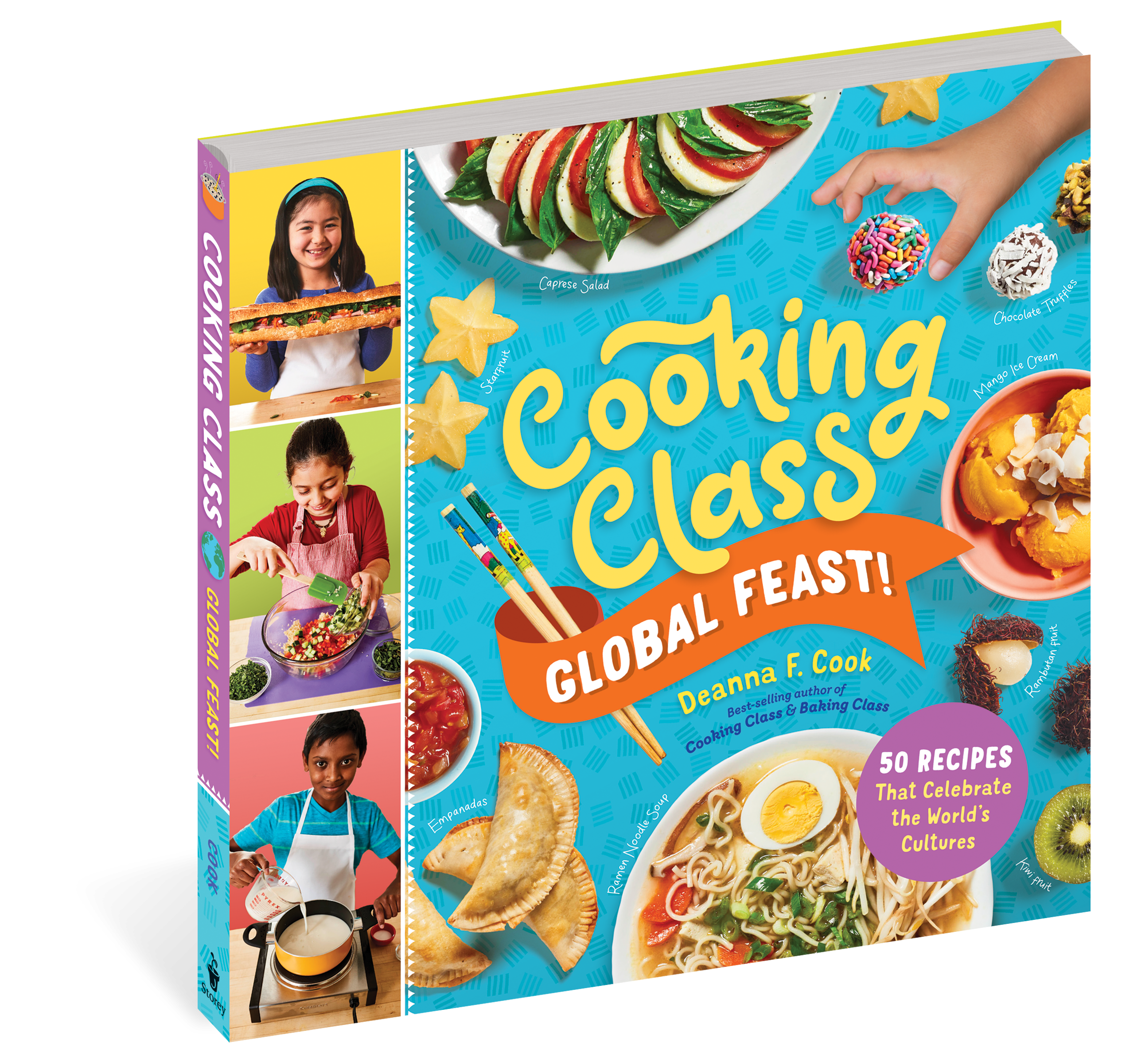Food is a fun way to celebrate diversity, and in her new kids’ cookbook, best-selling author Deanna F. Cook leads young chefs on a tasty tour of global cultures and cuisines. Kids gain practical kitchen skills through preparing breakfasts, drinks, snacks, dinners, and desserts from around the world. Alongside recipes for foods such as Irish soda bread, ANZAC biscuits, ramen noodle soup, and mango lassi, step-by-step photography and profiles feature children from a wide range of backgrounds honoring their heritage and preparing dishes that reflect their unique food traditions. A pop-out food passport, world language flash cards, and flag stickers provide additional fun on their global food journey, while infographics encourage taste-test explorations of fruits, drinks, breads, vegetables, and ice creams from around the world. Kids will be inspired to expand their palates as they cook, discovering new flavors while developing pride and appreciation for the foods they’ve grown up with.