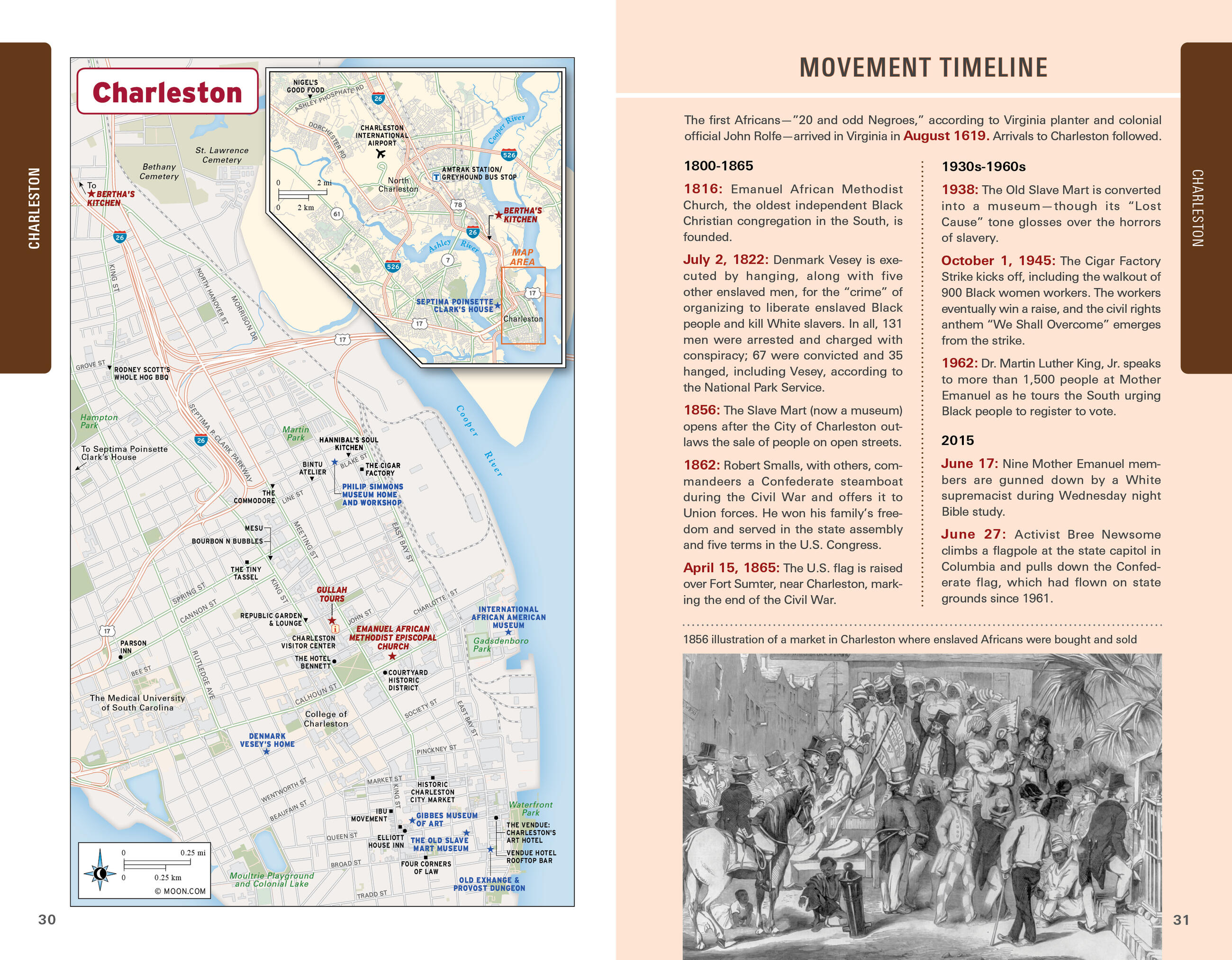 - Detailed coverage of: Charleston, Atlanta, Selma to Montgomery, Birmingham, Jackson, the Mississippi Delta, Little Rock, Memphis, Nashville, Raleigh, Durham, Virginia, and Washington DC