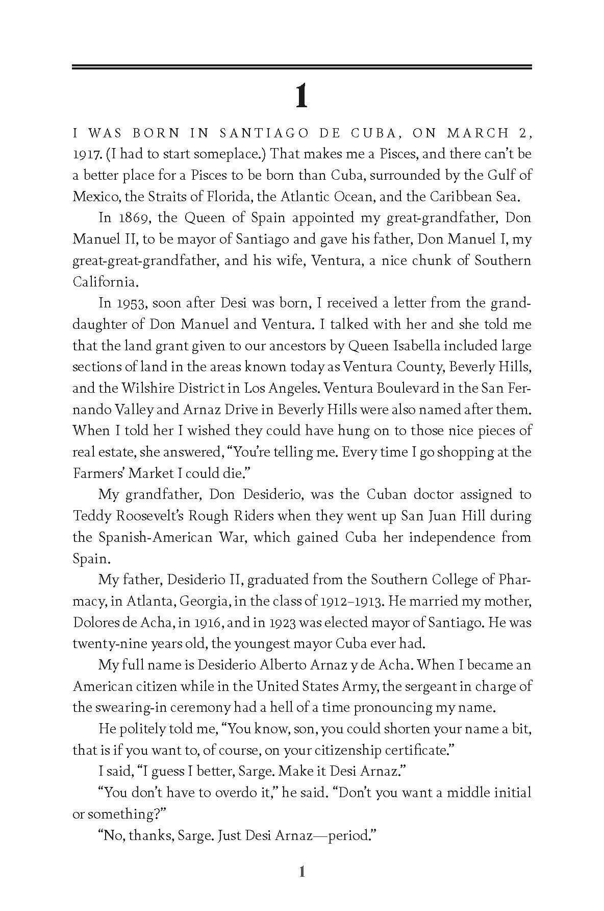 In the author’s own words: “Welcome to A Book, in which I try to explain how a kid from Cuba found a way to make a living in the United States. It’s all here—the good, the bad, the beautiful, the ugly, the unbelievably lucky breaks, and the heartbreaking failures. . . . You will learn what Lucy and I had to do to convince people we could play husband and wife in I Love Lucy. Shortly afterward Lucie and Desi Jr. were born and our world was paradise. The irony of it all is how our undreamed-of success, fame, and fortune turned it into hell. It wasn’t easy to write about all of it, but as my son said, ‘There’s only one way to do it, Dad. Tell it like it was.’”