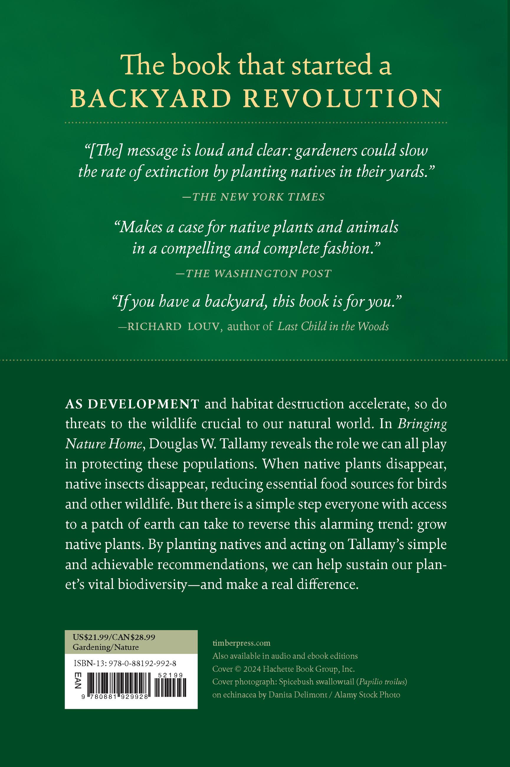 “Provides the rationale behind the use of native plants, a concept that has rapidly been gaining momentum. . . . The text makes a case for native plants and animals in a compelling and complete fashion.” I>The Washington Post