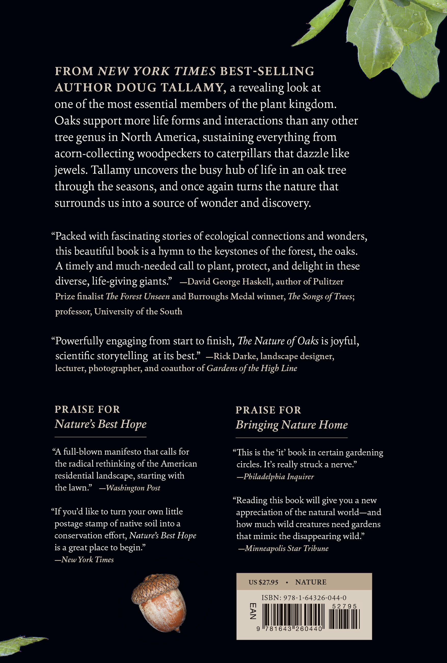 "Powerfully engaging from start to finish, The Nature of Oaks is joyful, scientific storytelling at its best." B>Rick Darke, landscape designer, lecturer, photographer, and coauthor of Gardens of the High Line