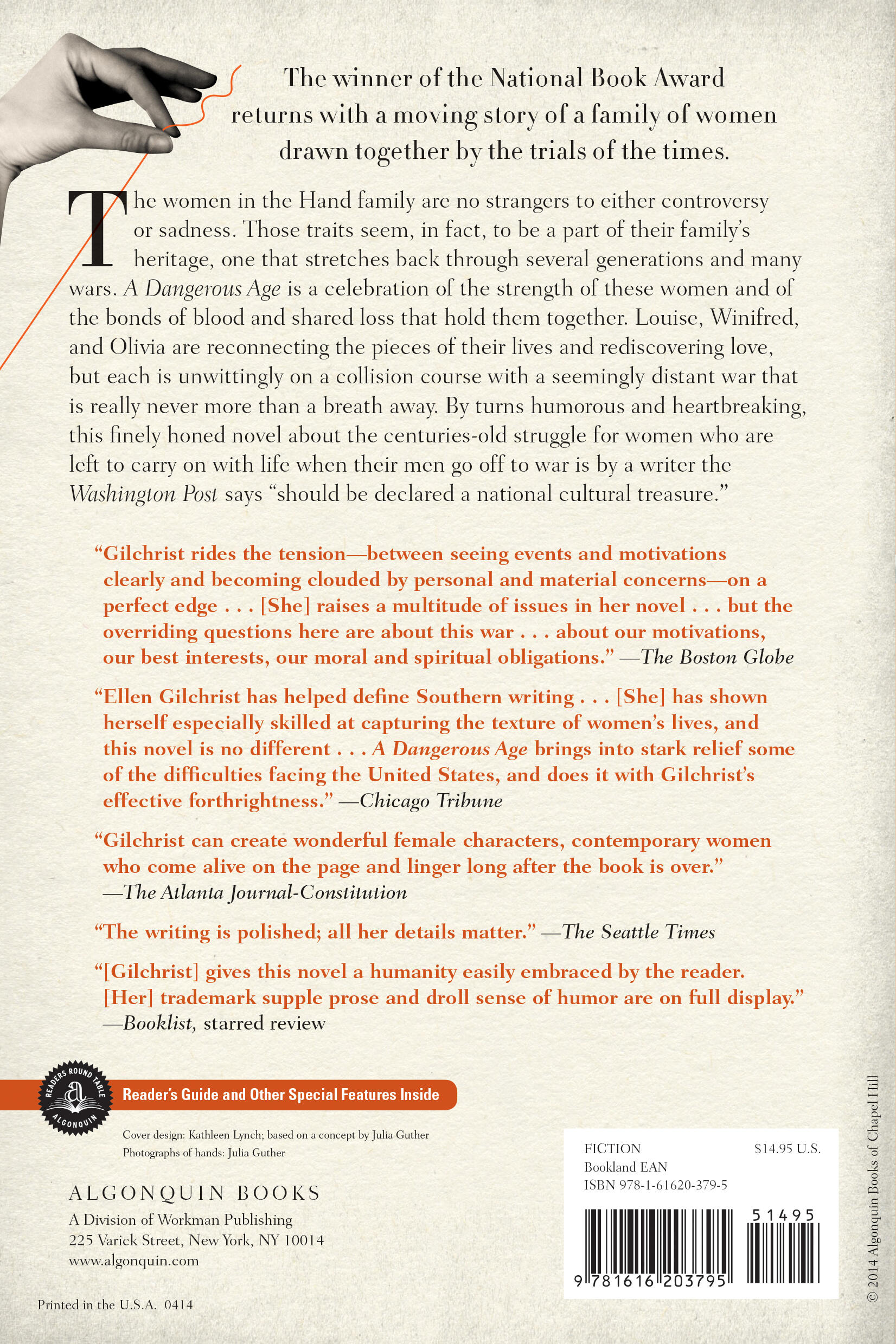 The women in the Hand family are no strangers to either controversy or sadness. Those traits seem, in fact, to be a part of their family’s heritage, one that stretches back through several generations and many wars. A Dangerous Age is a celebration of the strength of these women and of the bonds of blood and shared loss that hold them together. Louise, Winifred, and Olivia are reconnecting the pieces of their lives and rediscovering love, but each is unwittingly on a collision course with a seemingly distant war that is really never more than a breath away. By turns humorous and heartbreaking, this finely honed novel about the centuries-old struggle for women who are left to carry on with life when their men go off to war is by a writer the Washington Post says “should be declared a national cultural treasure.”