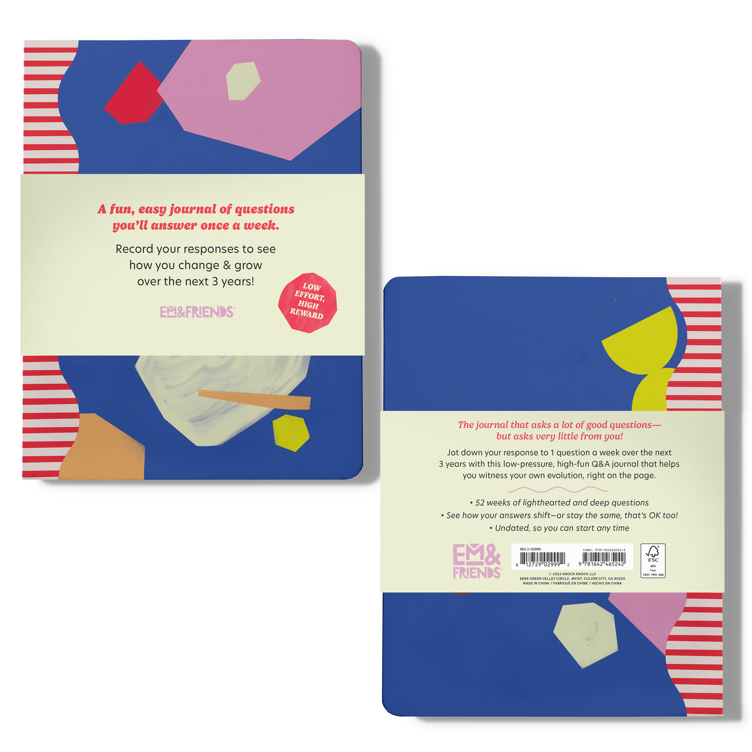 Say hello to your favorite new journal that asks a lot of good questions, but hardly demands anything from you! Log how you change & grow over 3 years (in a row) with this low-pressure, high fun Q&A journal you only need to write in once a week. You are a delightfully complex emotional being & this journal wants you to see just how very fascinating you are!