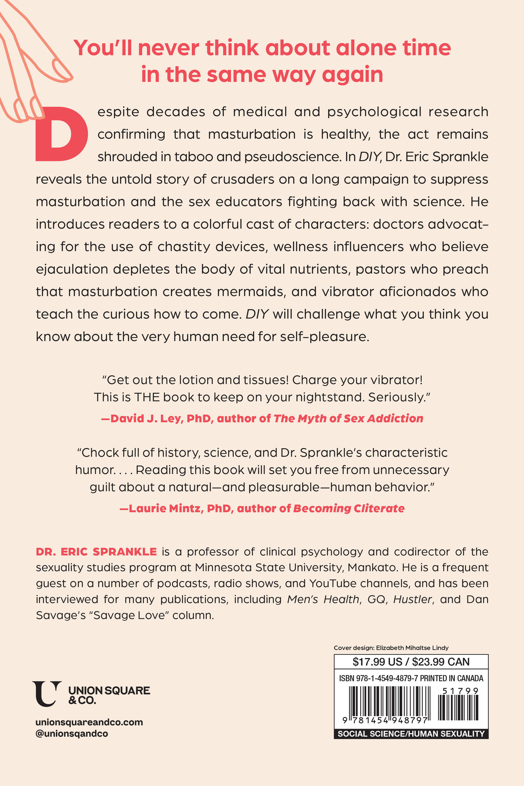 Despite decades of medical and psychological research confirming that masturbation is healthy, the act remains shrouded in taboo and pseudoscience. In DIY, Dr. Eric Sprankle reveals the untold story of crusaders on a long campaign to suppress masturbation and the sex educators fighting back with science. He introduces readers to a colorful cast of characters: doctors advocating for the use of chastity devices, wellness influencers who believe ejaculation depletes the body of vital nutrients, pastors who preach that masturbation creates mermaids, and vibrator aficionados who teach the curious how to come. DIY will challenge what you think you know about the very human need for self-pleasure.