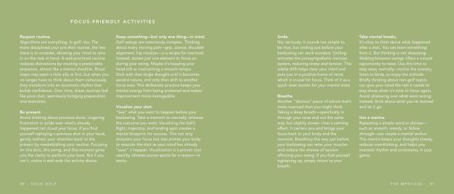 - The Mystical—beautiful meditative essays exploring the unexpected mental benefits of solo golf