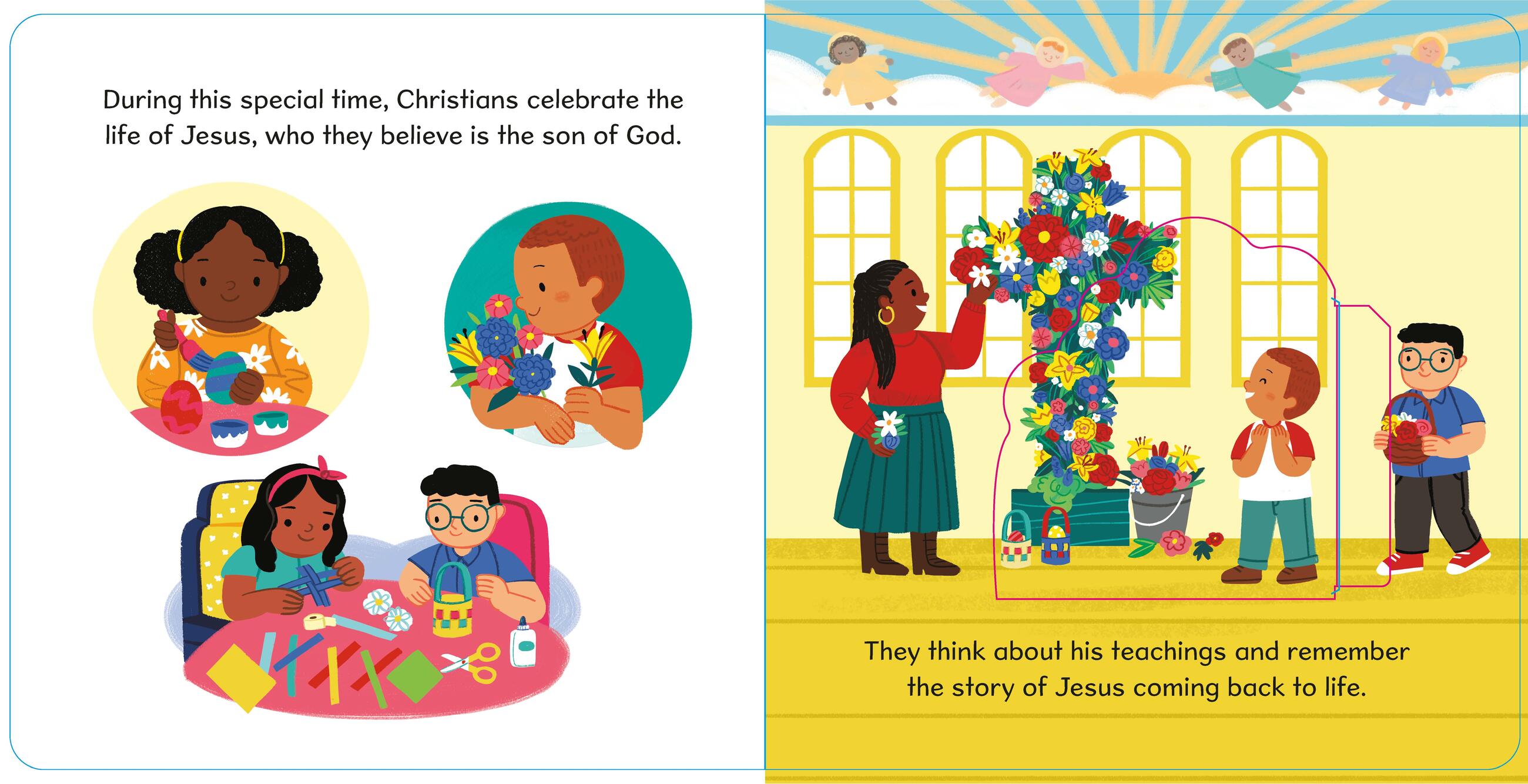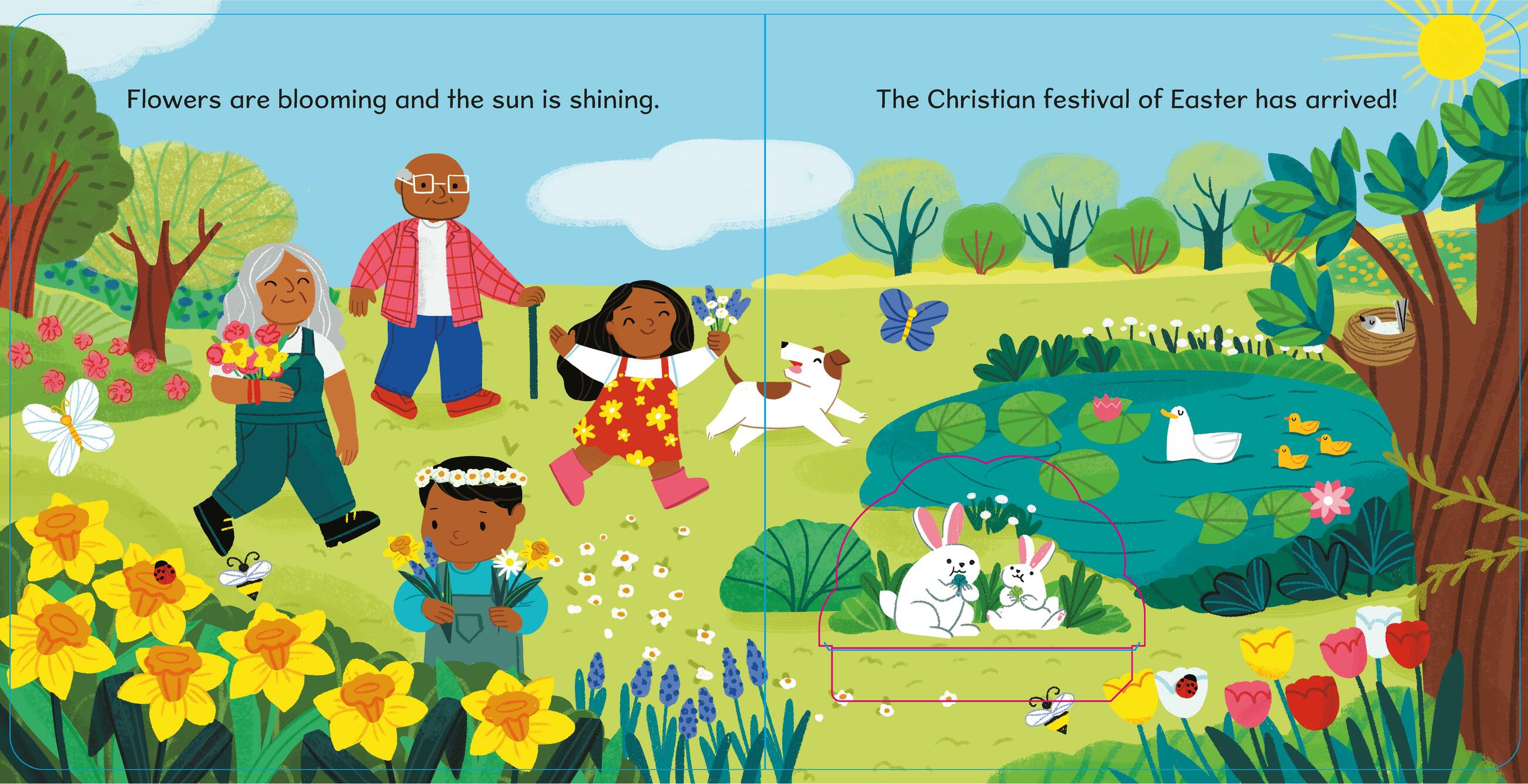 On the first Sunday after the spring equinox it is time for Easter! Little readers can lift the flap on each page to learn about the traditions, foods, and ways that people celebrate this special holiday. Easter is about the celebration of Jesus’s resurrection and of his teachings, and is an important time for friends and family to spend time together. Readers will learn about this as well as other important traditions of the holiday including attending church on Easter Sunday, eating delicious foods with loved ones, hunting for eggs, and attending parades. This is an adorable, novelty board book for babies and toddlers with simple, informative language and vibrant illustrations that celebrate Easter.