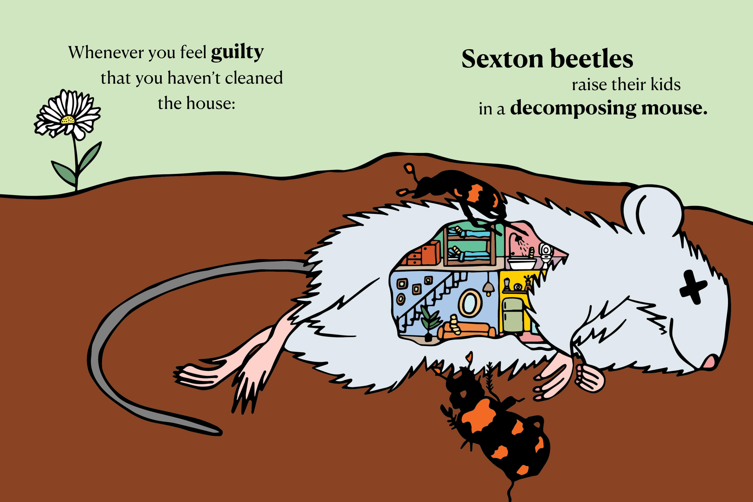 Sexton beetles raise their kids in a decomposing mouse.