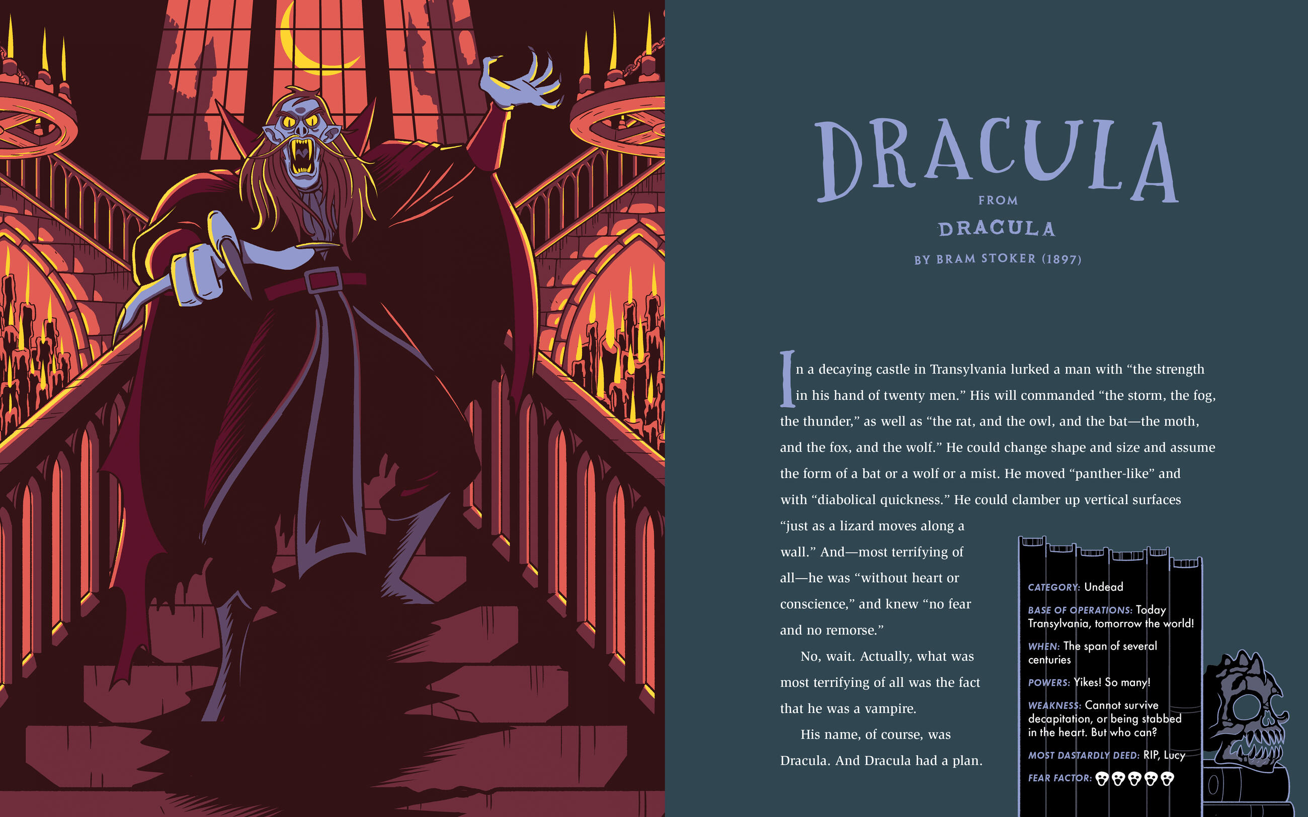 Drawn from the pages of classic books and tales as old as time, this frightfully exciting collection features 25 of the creepiest creatures ever imagined, from witches and werewolves to dragons and ghosts. Every monster is brought to life in a full-size full-color portrait that captures the essence of the beast, and in lively text that recounts the monster’s spine-tingling story. With sidebars that explore the history and the genre of each sourcebook, The Big Book of Monsters is an exciting introduction to literature and language arts.