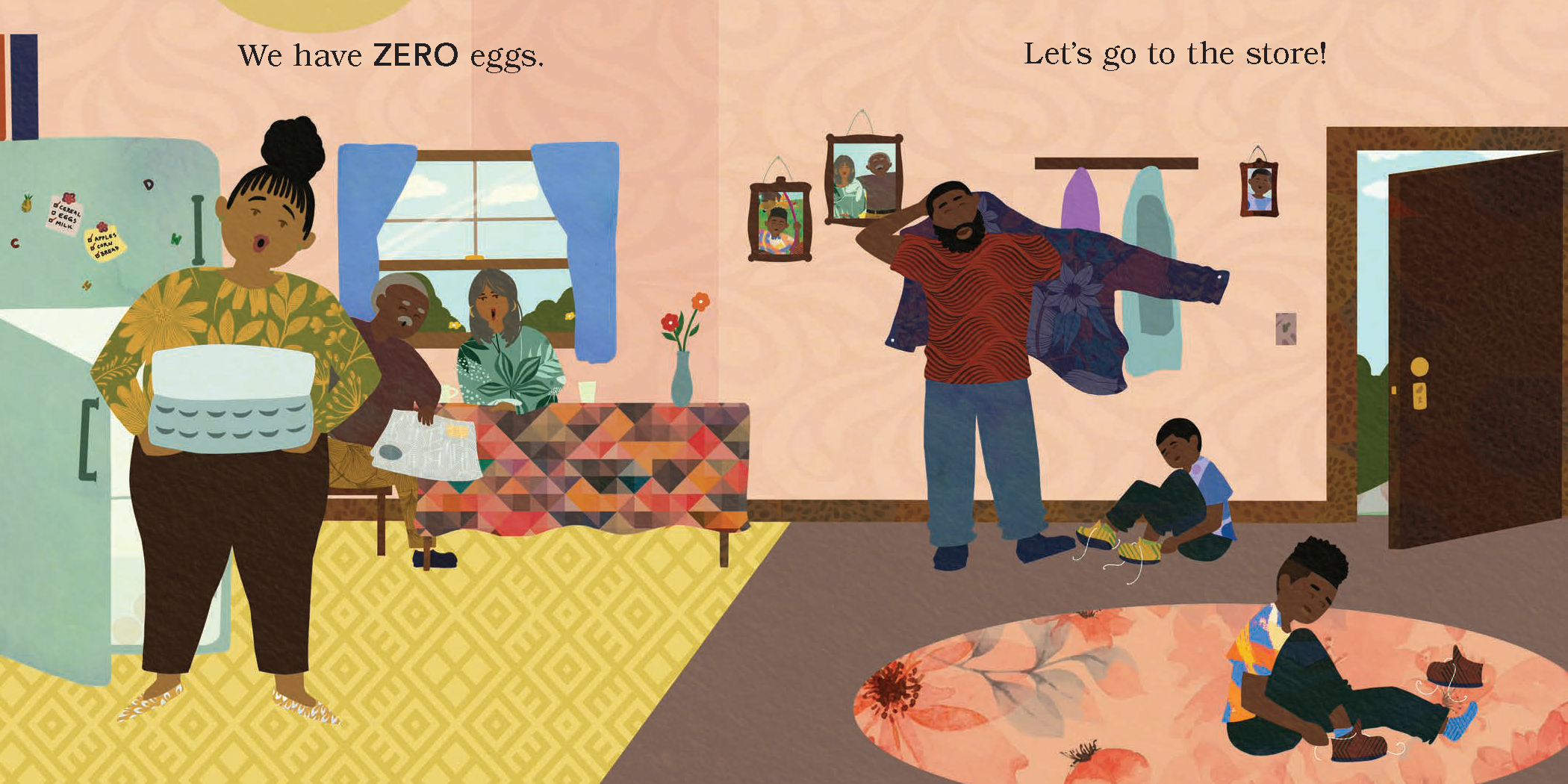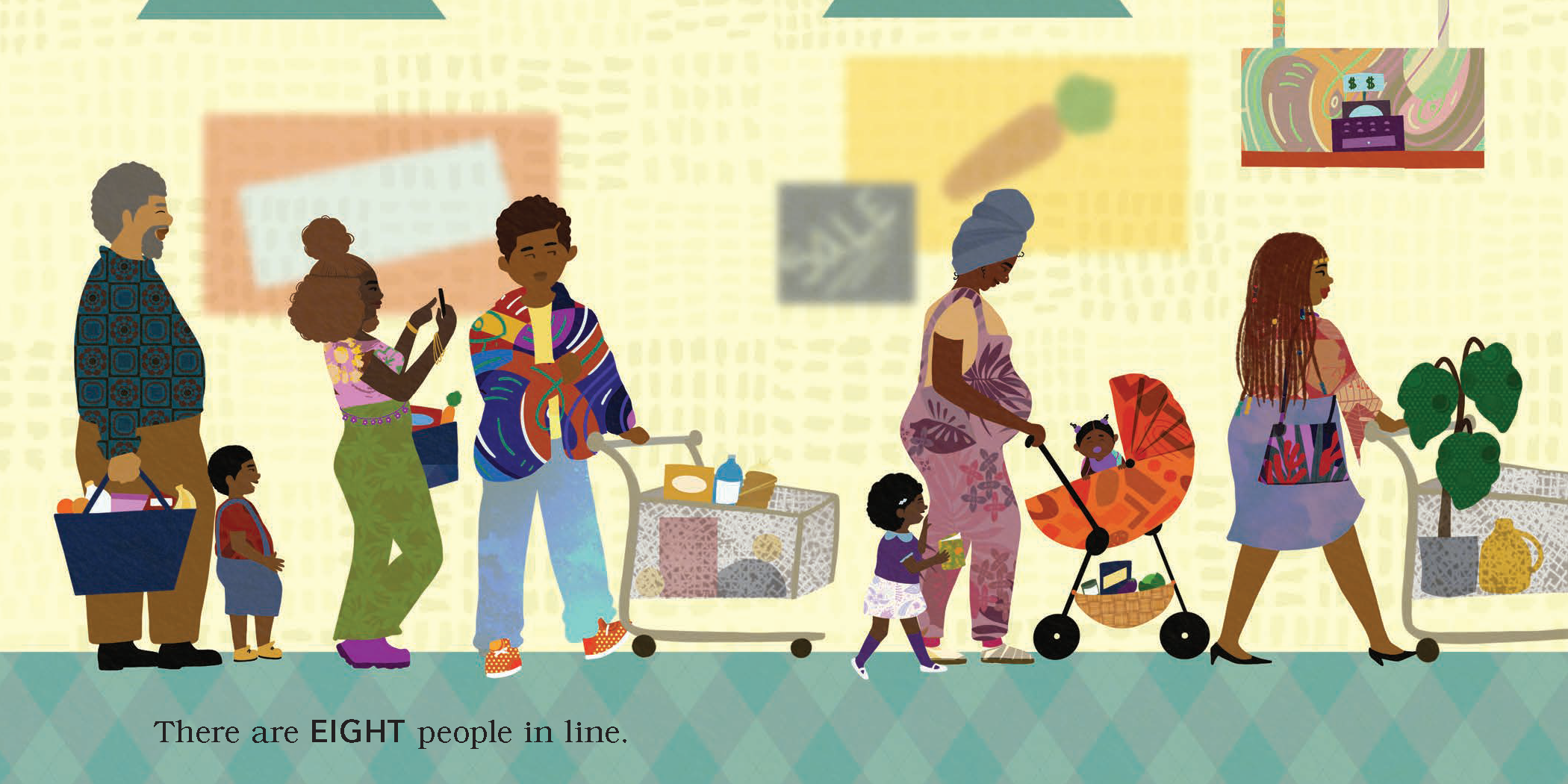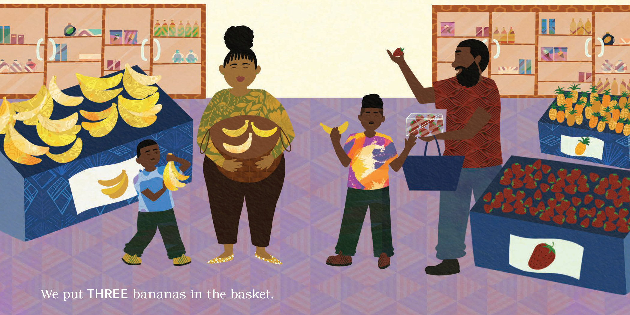 When Mom realizes there are zero eggs in the house, the entire family heads to the store to pick up more. Readers can join the counting fun as the family shops and adds more items to their basket–from three bananas to five plums–amid the backdrop of a bustling market. Publishing simultaneously with The Rainbow Park, The Numbers Store studies numbers through the experience of an intergenerational Black family’s trip to the local grocery store.
