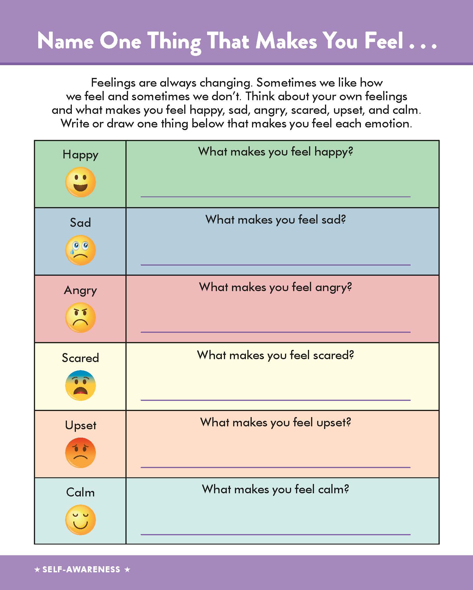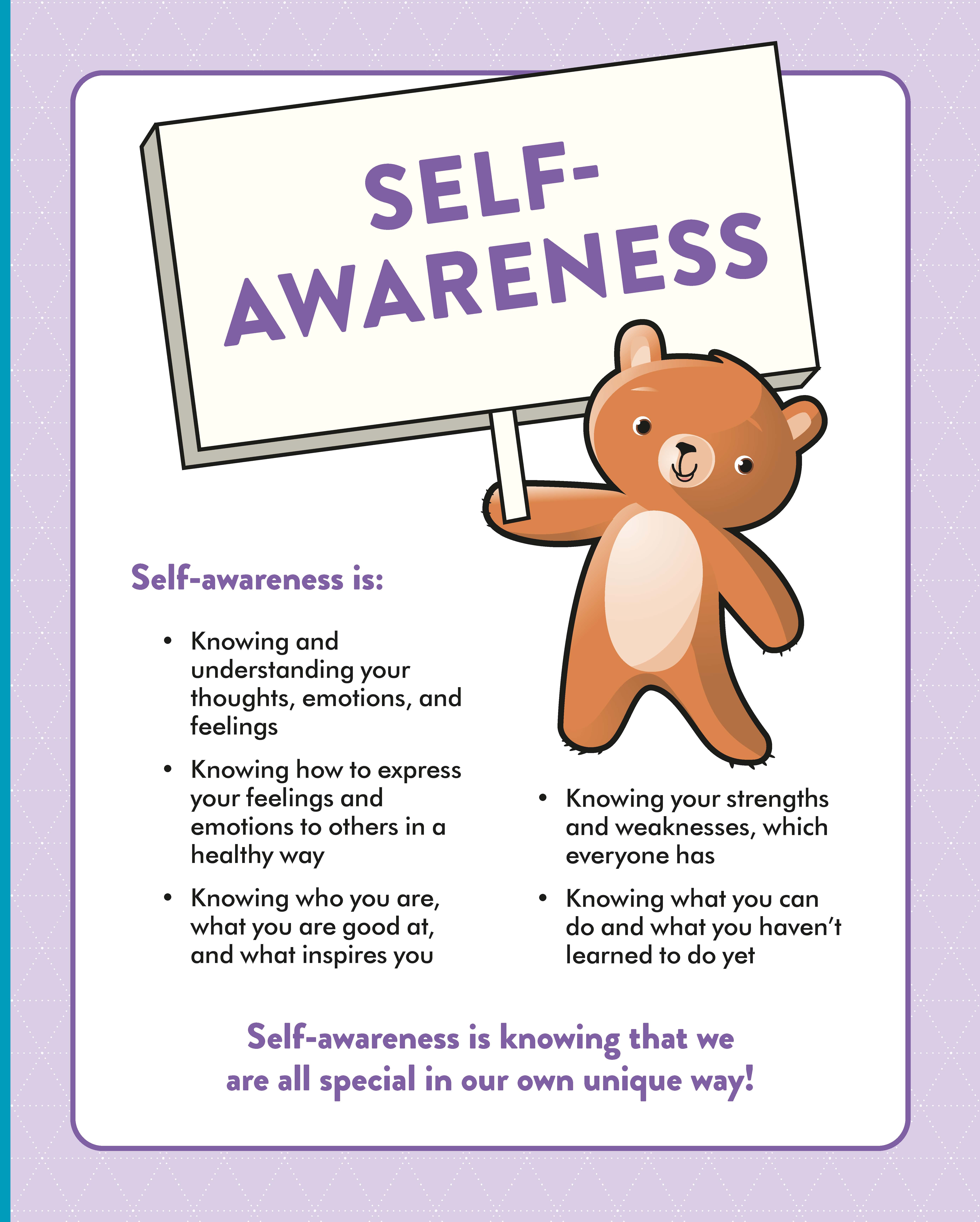 - Learn to identify their thoughts, emotions, and feelings, and to express them in a healthy way