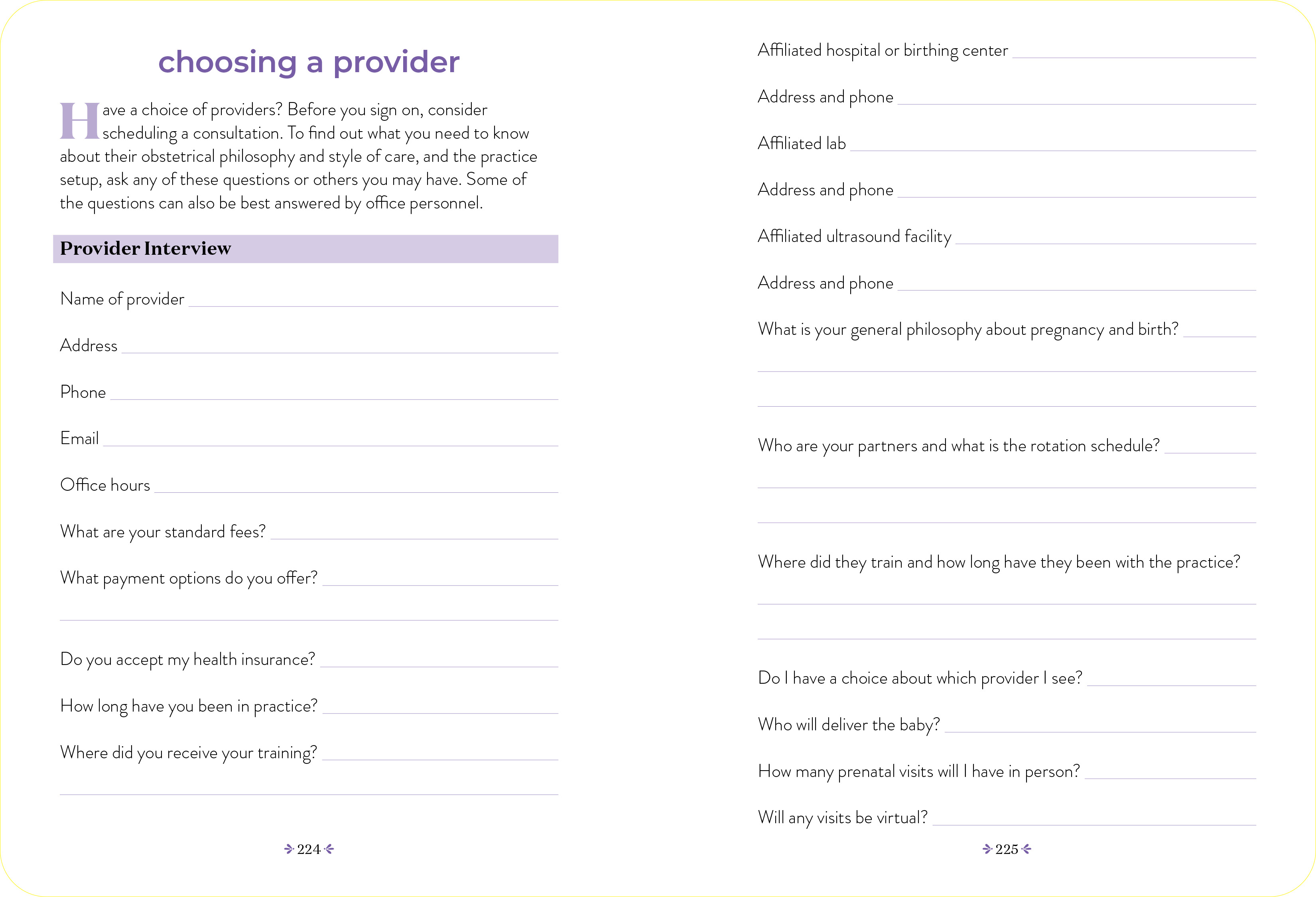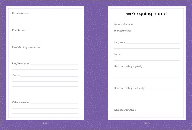 An all-in-one write-in book, filled with prompts, it works as a journal and daily diary to record all those memorable moments, from that positive pregnancy test to those precious ultrasounds, first kick to first contraction to first cuddle. It’s also an organizer, compact enough to toss in your bag, to keep track of provider visits, questions you want to ask the doctor, shopping lists, medications, birthing plans, and so much more. And, finally, it’s a cherished place to write down everything you’ll want to remember about these extraordinary nine months and, after baby arrives, the highs and lows of your “fourth trimester.”