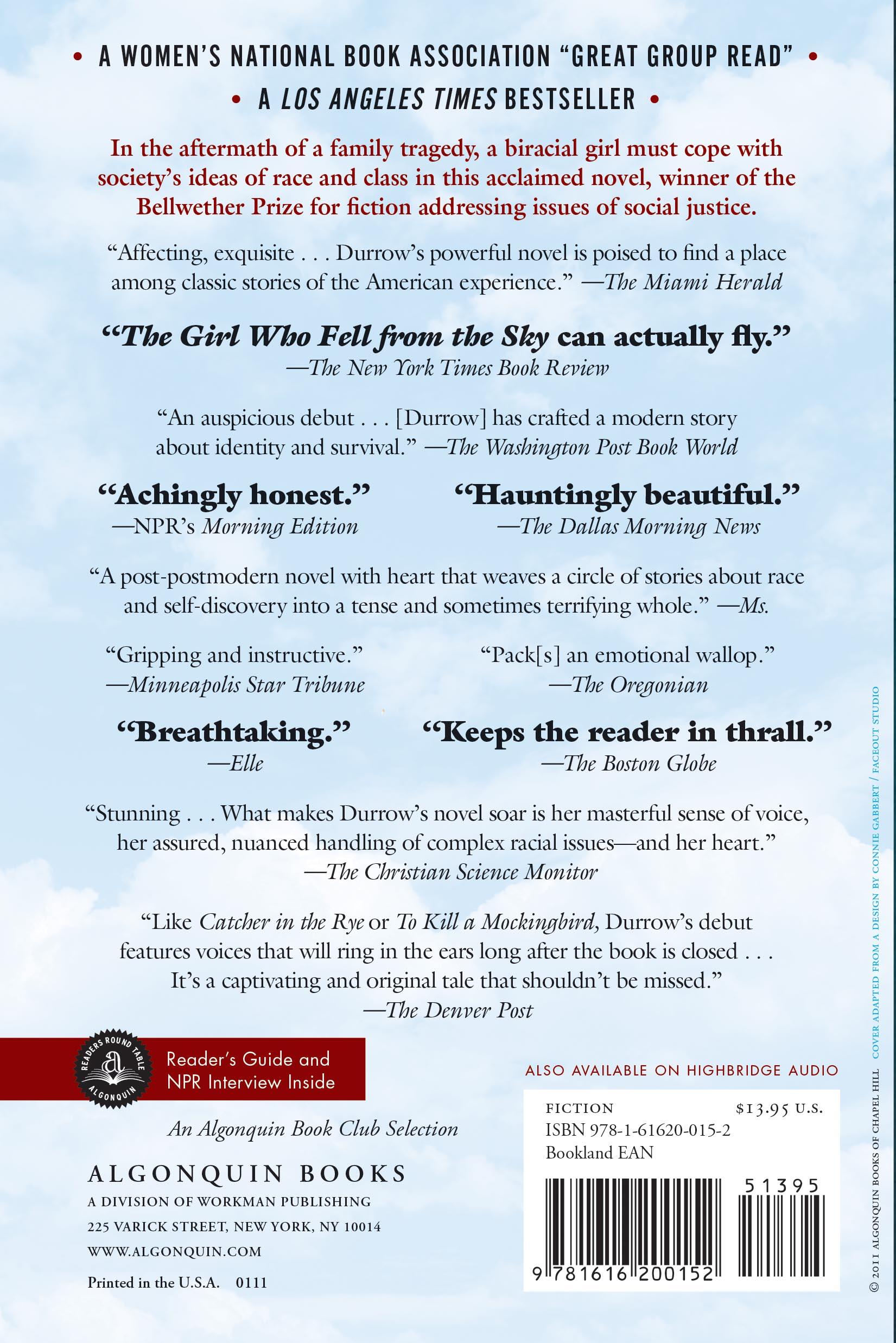 "The Girl Who Fell from the Sky can actually fly . . . Its energy comes from its vividly realized characters . . . Durrow has a terrific ear for dialogue, an ability to summon a wealth of hopes and fears in a single line."