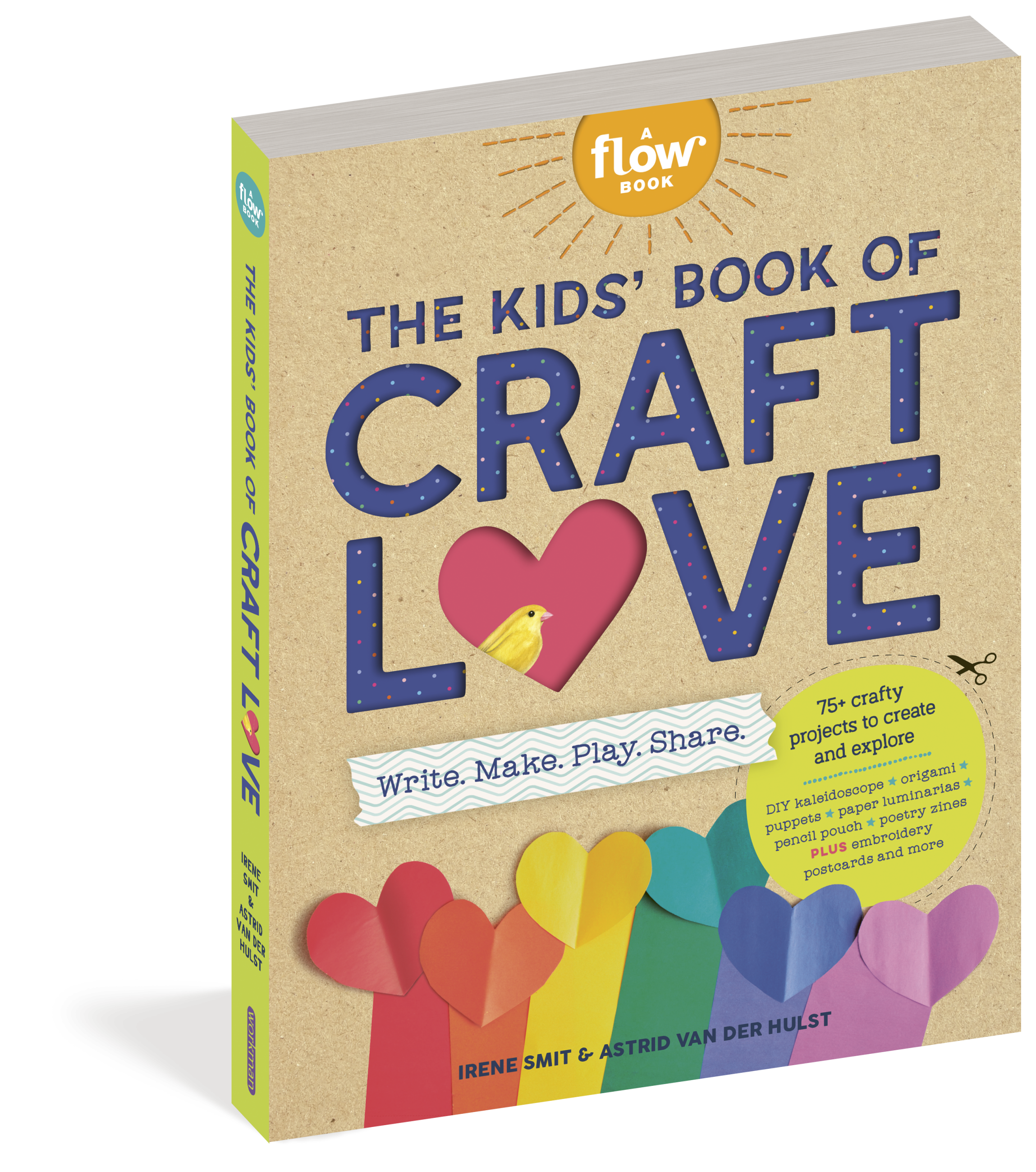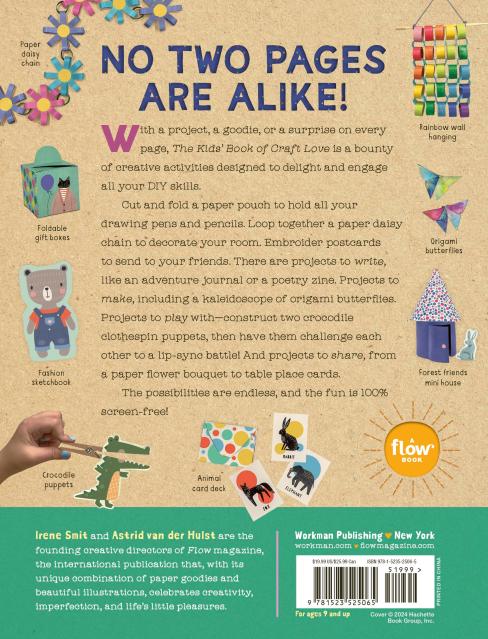 The newest book in Flow Magazine’s creativity series for kids, The Kids’ Book of Craft Love is filled to the brim with engaging activities that invite the reader (ages 7 & up) to tear out pages, cut and paste, assemble, sticker, build, and turn the two-dimensional sheets into three-dimensional wonders. Cut and fold a paper pencil pouch to hold all your art utensils. Fold a DIY adventure log notebook to take on your next adventure. Loop together a paper daisy chain to decorate your room. Construct two crocodile clothespin puppets, then have them challenge each other to a lip-sync battle! Make gift boxes, a paper flower bouquet, a woodland scene for your desk, a basket, paper lanterns, a crown, an origami friendship bracelet, and so much more.