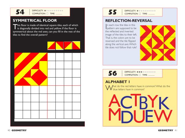 Here are mental games, visual challenges, logic posers, riddles, and illusions, each designed to stretch neurons and give the brain a workout—all in a format that will fit in your pocket. The puzzles (both original and mind-boggling adaptations of classics) are rated in difficulty from level one to ten, but even the easiest are guaranteed to make the solver feel smart.