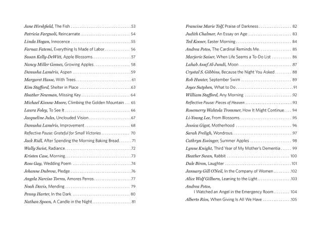 "The anthology represents a wide range of poetic voices revealing gratitude as an essential emotion that is simple and complex, all around us but also elusive." — The Boston Globe