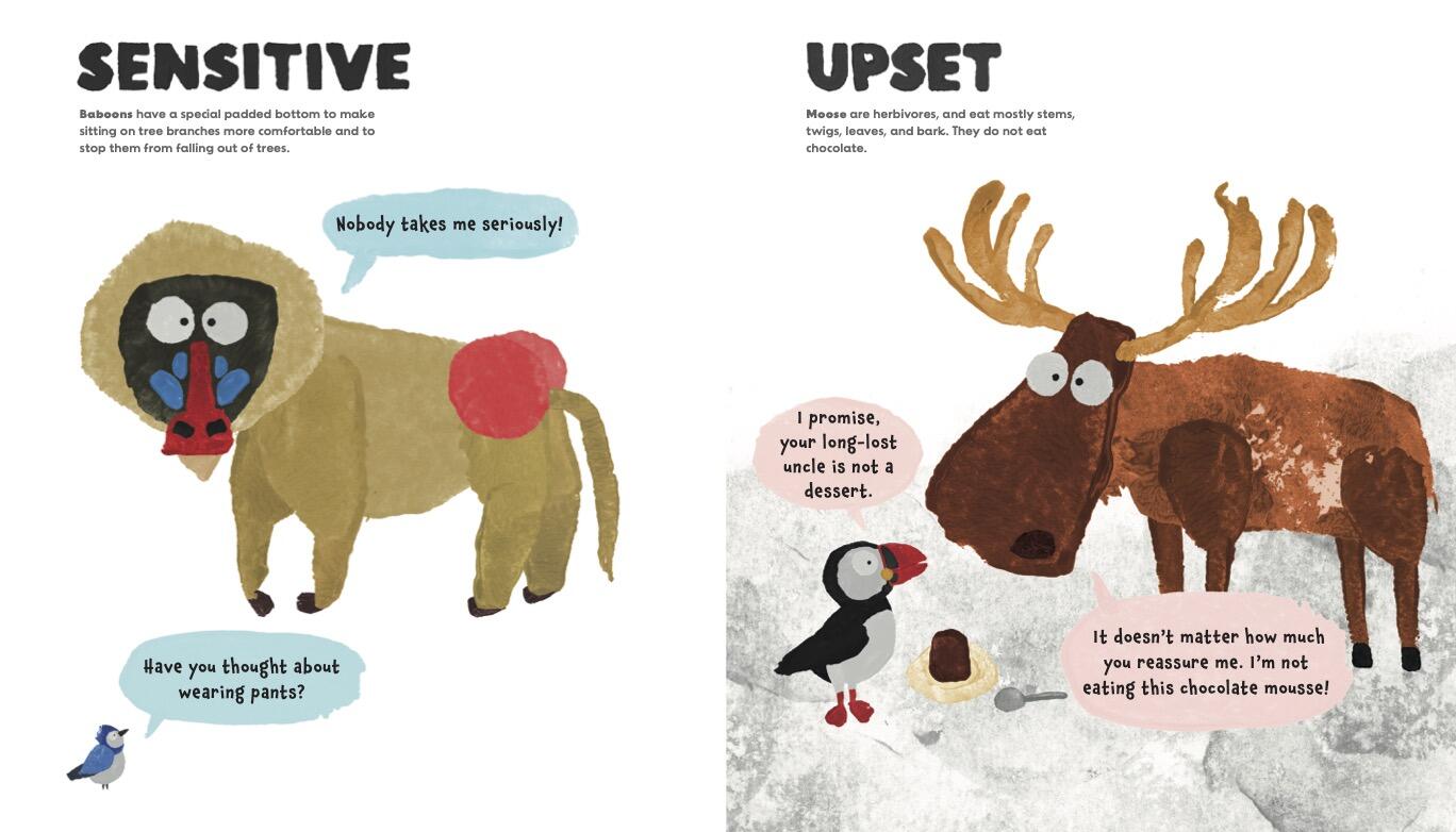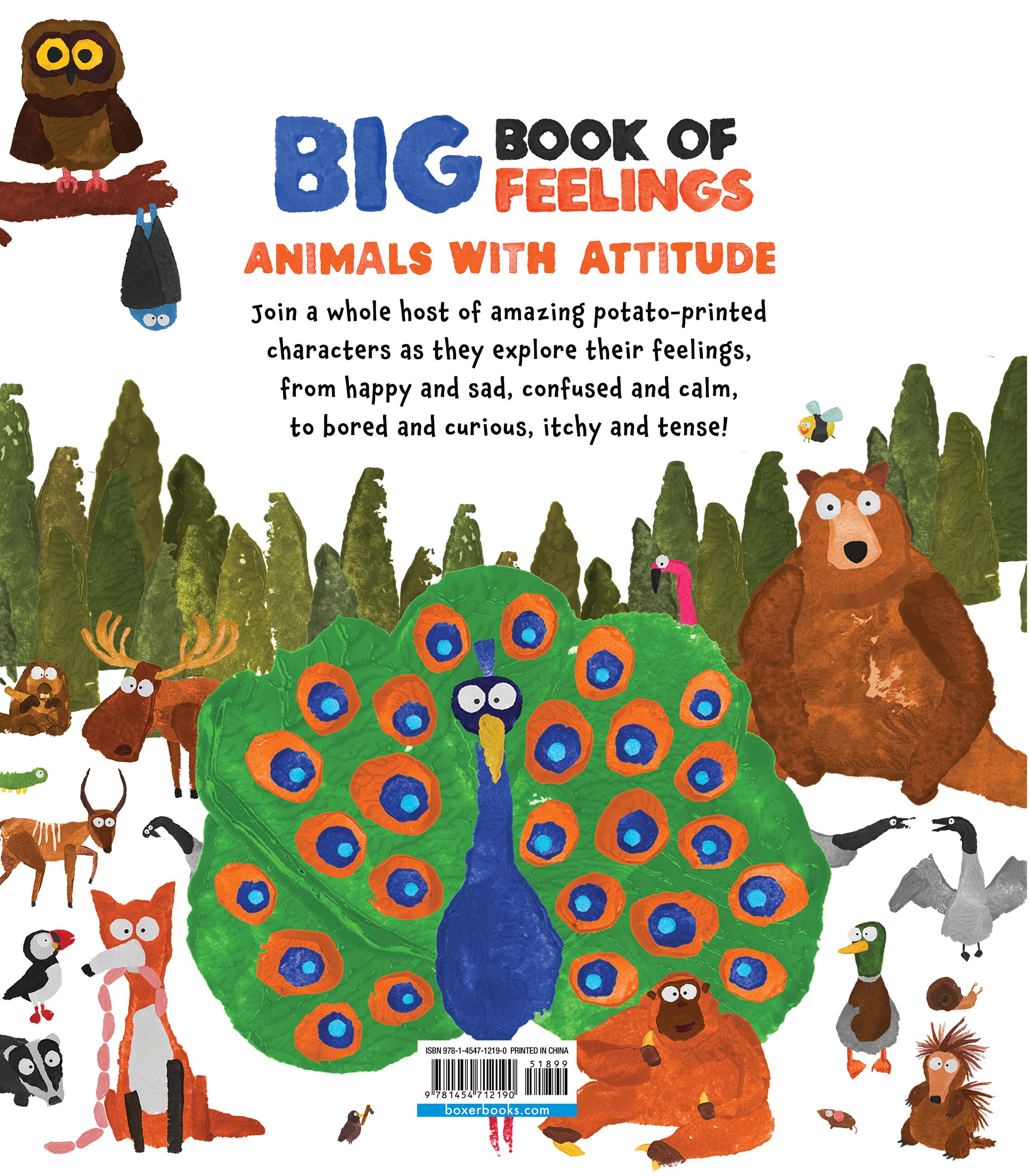 Get ready for a kaleidoscope of big, bright, bold colors, as James O’Brien’s distinctive potato-printed illustrations and funny quips help children navigate a range of feelings and emotions‚ from fabulous and joyful to bored and vain.These great characters explore feelings with humor and pathos, building self-awareness and knowledge of the world. Each feeling is explored through the eyes of a particular animal, providing much scope for discussion between caregiver and child.