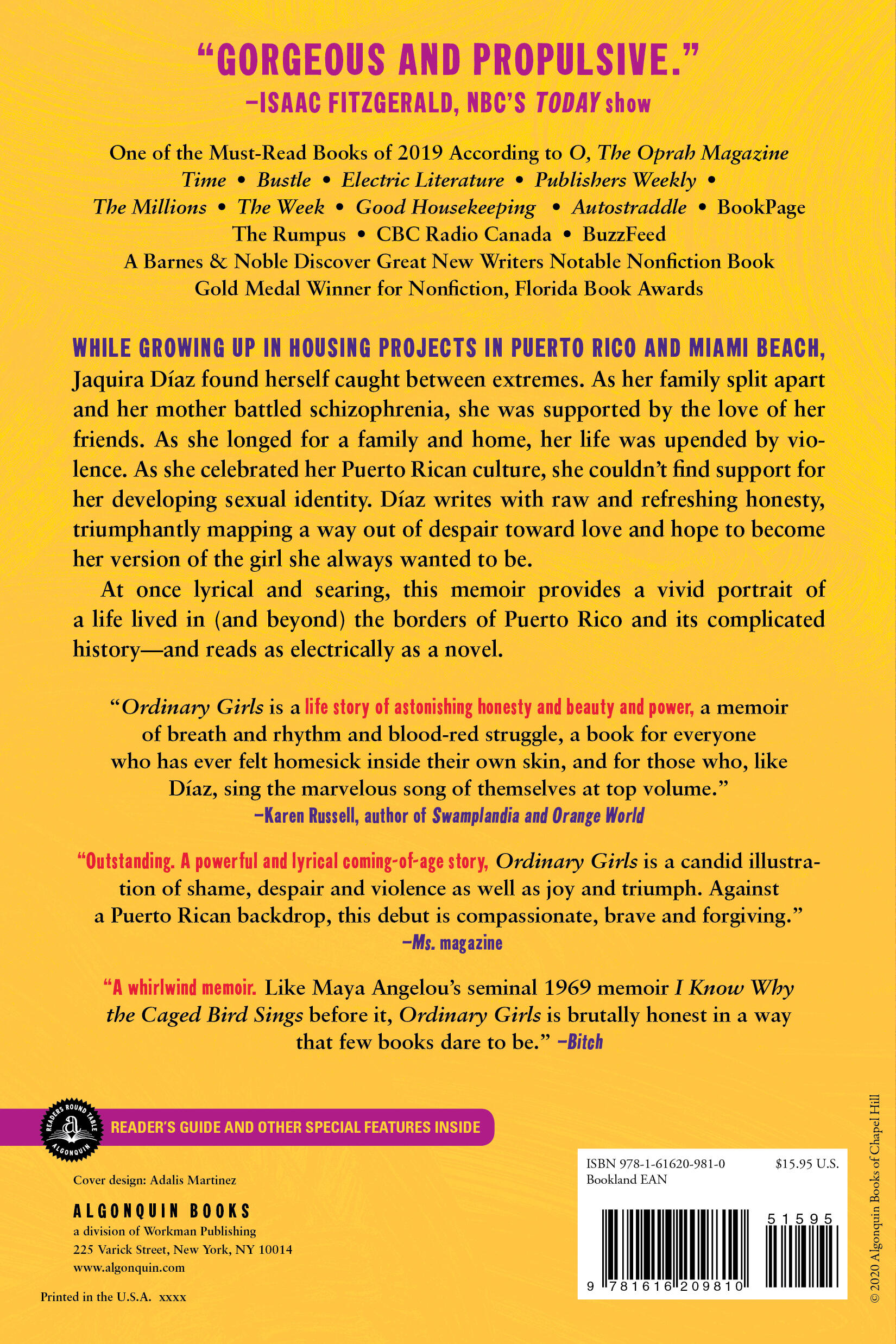“Outstanding. A powerful and lyrical coming-of-age story, Ordinary Girls is a candid illustration of shame, despair and violence as well as joy and triumph. Against a Puerto Rican backdrop, this debut is compassionate, brave and forgiving.”