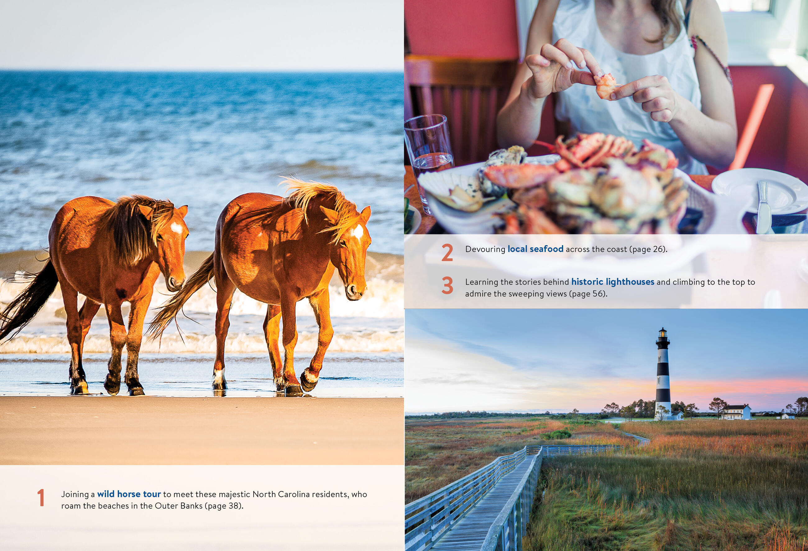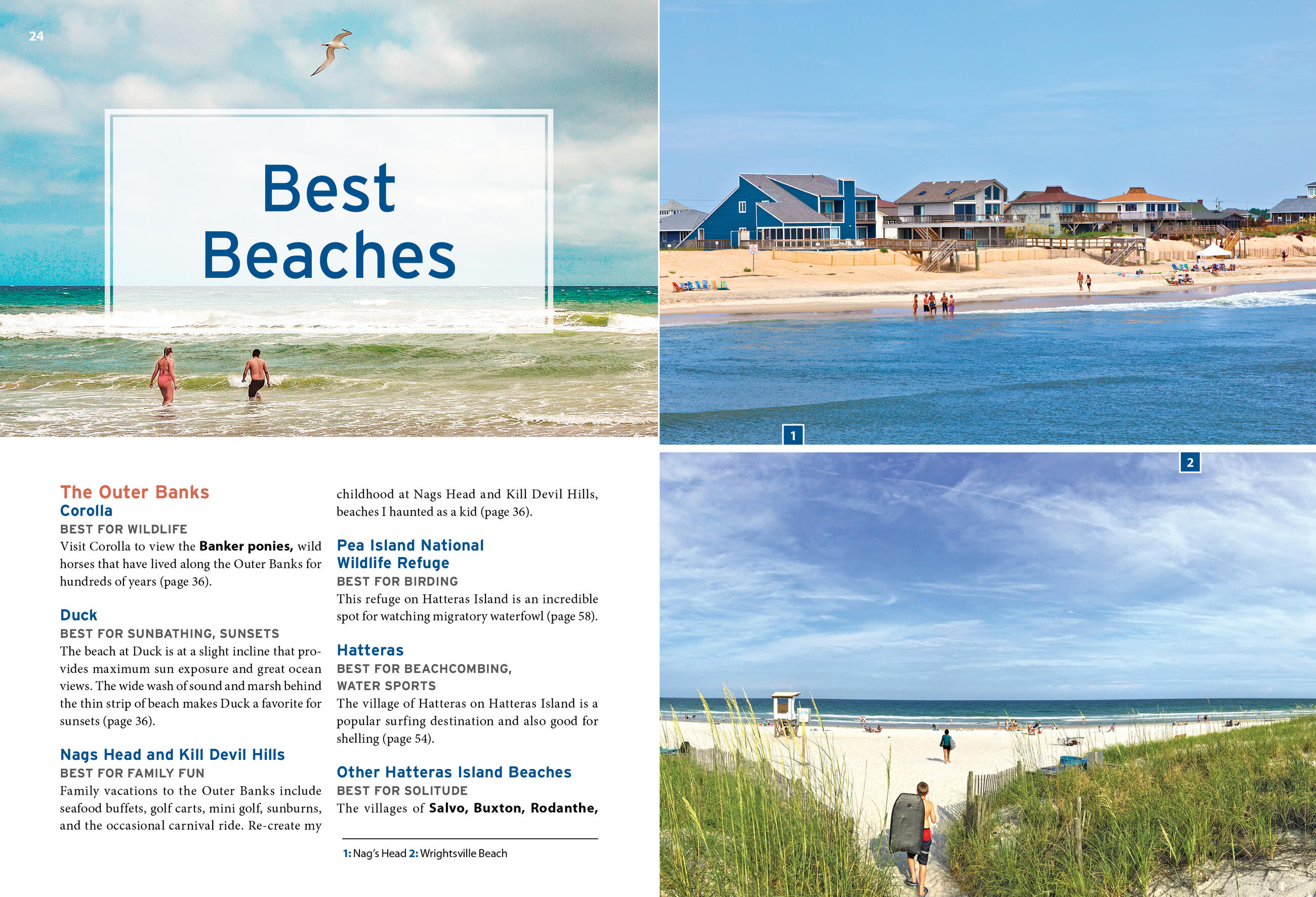 - Strategic itineraries, from a weekend getaway to the Outer Banks to a week covering the whole coast, designed for beach bums, outdoor adventurers, history buffs, families, and more