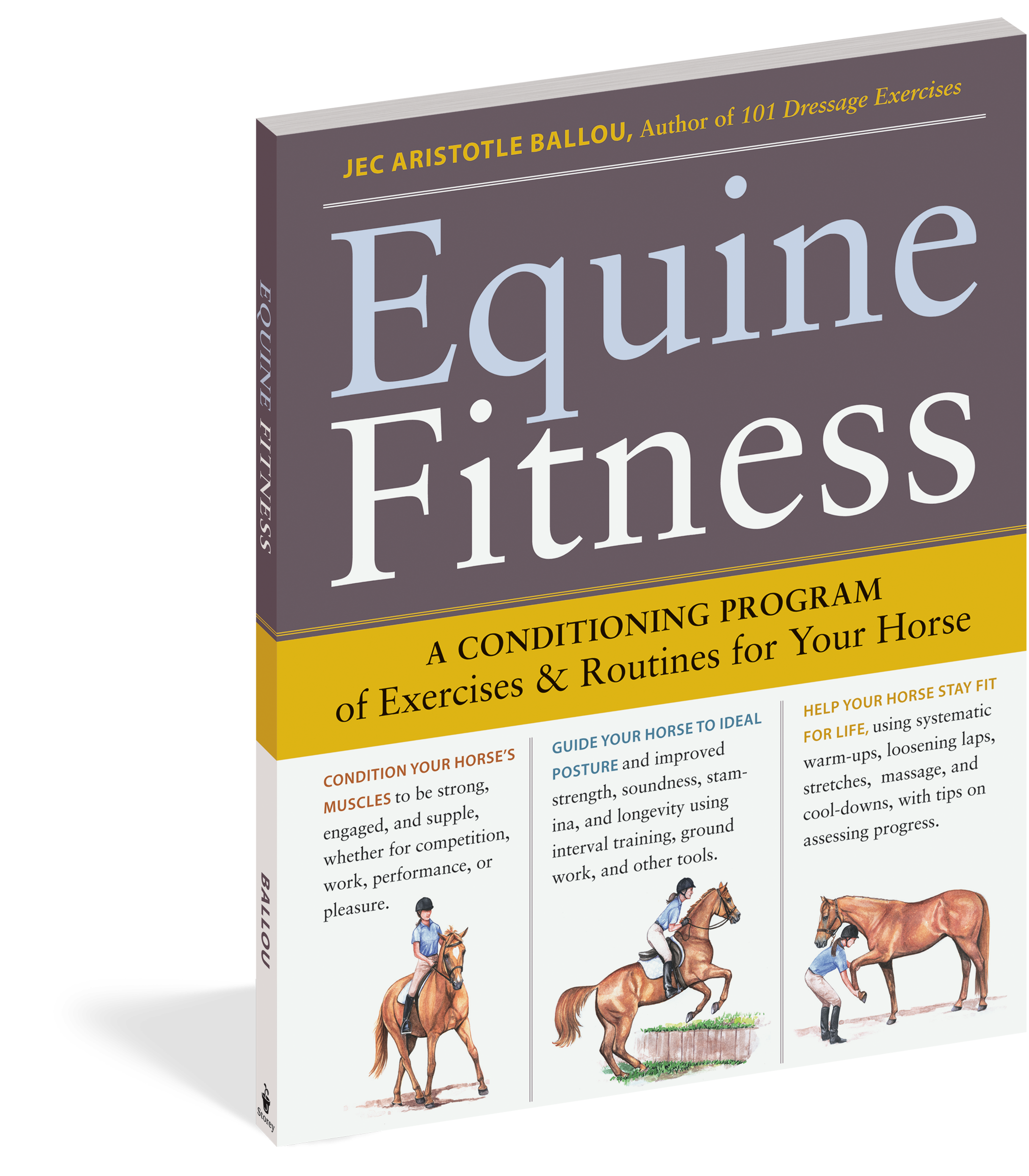 Get your horse in shape and maintain his overall fitness, regardless of his age or abilities. Equine Fitness will have your horse looking and feeling his best with a series of fun exercise routines specifically designed to enhance his strength, stamina, and agility. Clear step-by-step instructions and detailed illustrations make the exercises easy to follow, and the book includes a handy set of pocket-sized cards that you can use in the ring. Jec Ballou’s simple conditioning program promises lasting results for healthy horses and satisfied riders.