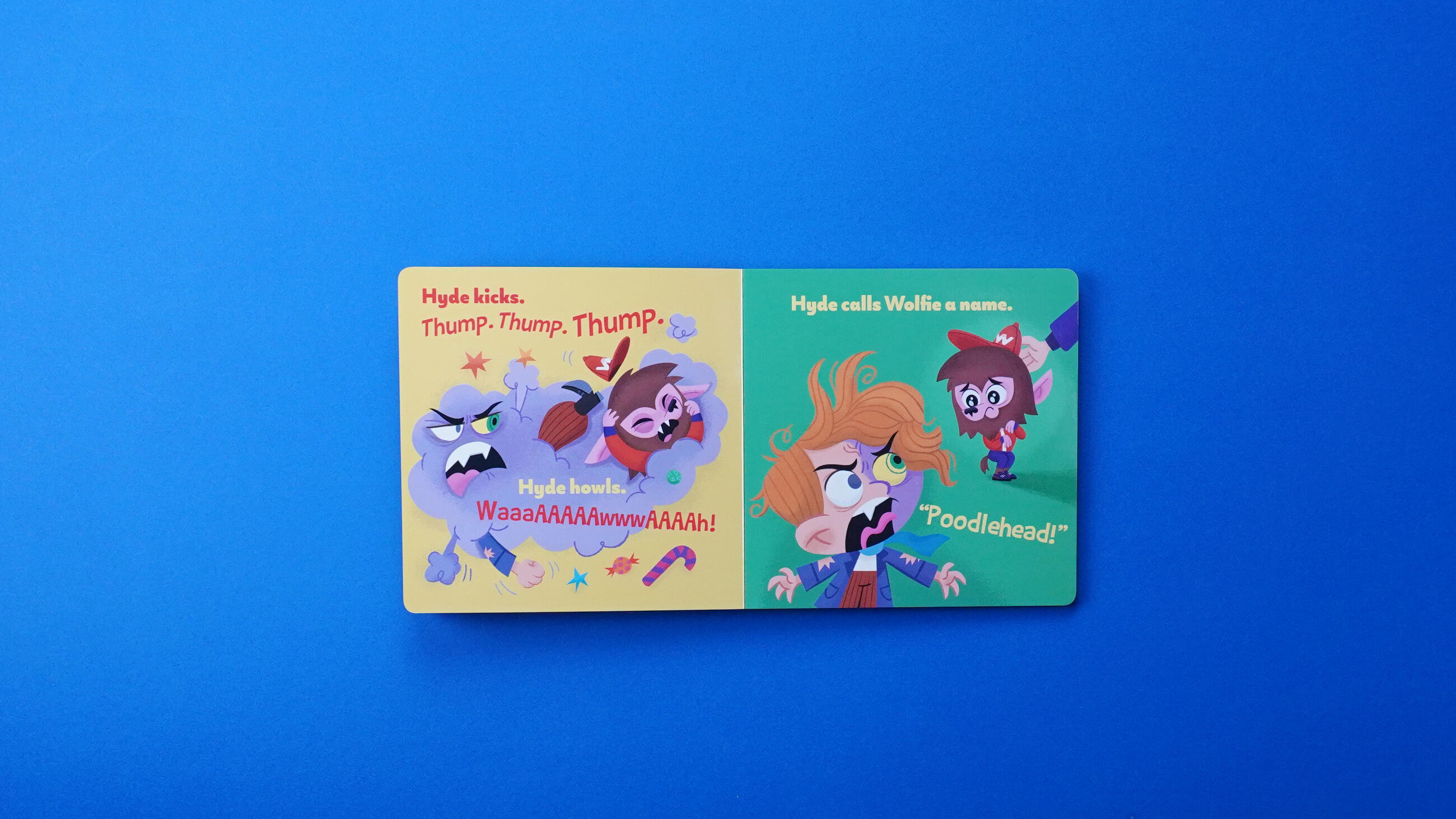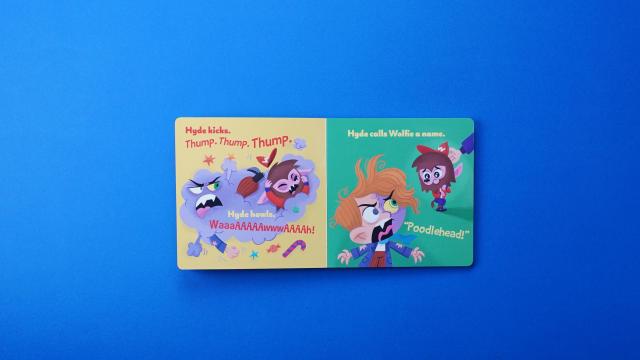 Jekyll’s having a bad day–uh oh! When Jekyll and his friend, Wolfie, go to the candy store and there is only one lollipop left and Jekyll’s bad mood side–Hyde–takes everyone by surprise! After a little time and some big emotions, Jekyll and his parents learn to navigate the highs and lows of big moods. Perfect for parents to share with young readers who are experiencing their own firsts, Jekyll’s Bad Mood presents an early childhood milestone through a classic literary monster.