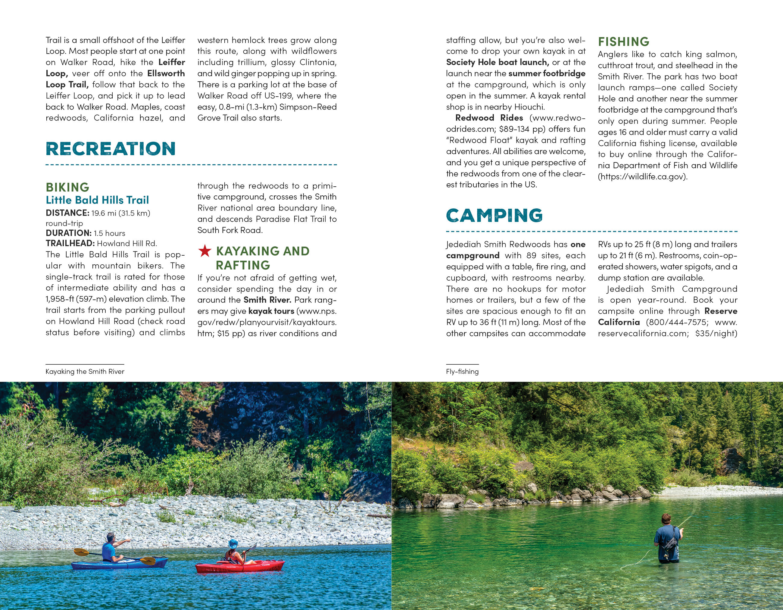 - Detailed hike descriptions marked with distance, duration, effort level, and trailheads