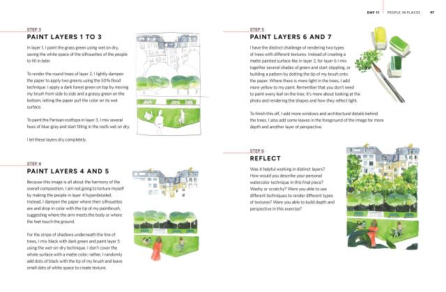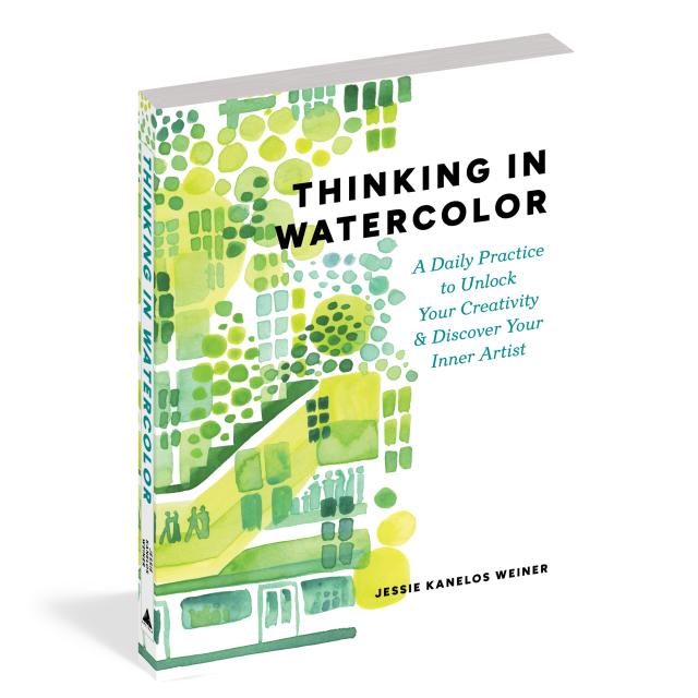 Unlike most watercolor instruction books based on rote copying of classic watercolor subjects, Thinking in Watercolor encourages readers to use art as a means of self-expression. Author and in-demand illustrator Jessie Kanelos Weiner encourages readers through foundational watercolor techniques and shows how to adapt them to share their personal experiences over the course of several days. On Day 10 they’ll illustrate a family recipe; on Day 14 they’ll go on a scavenger hunt through a local museum—and so forth.