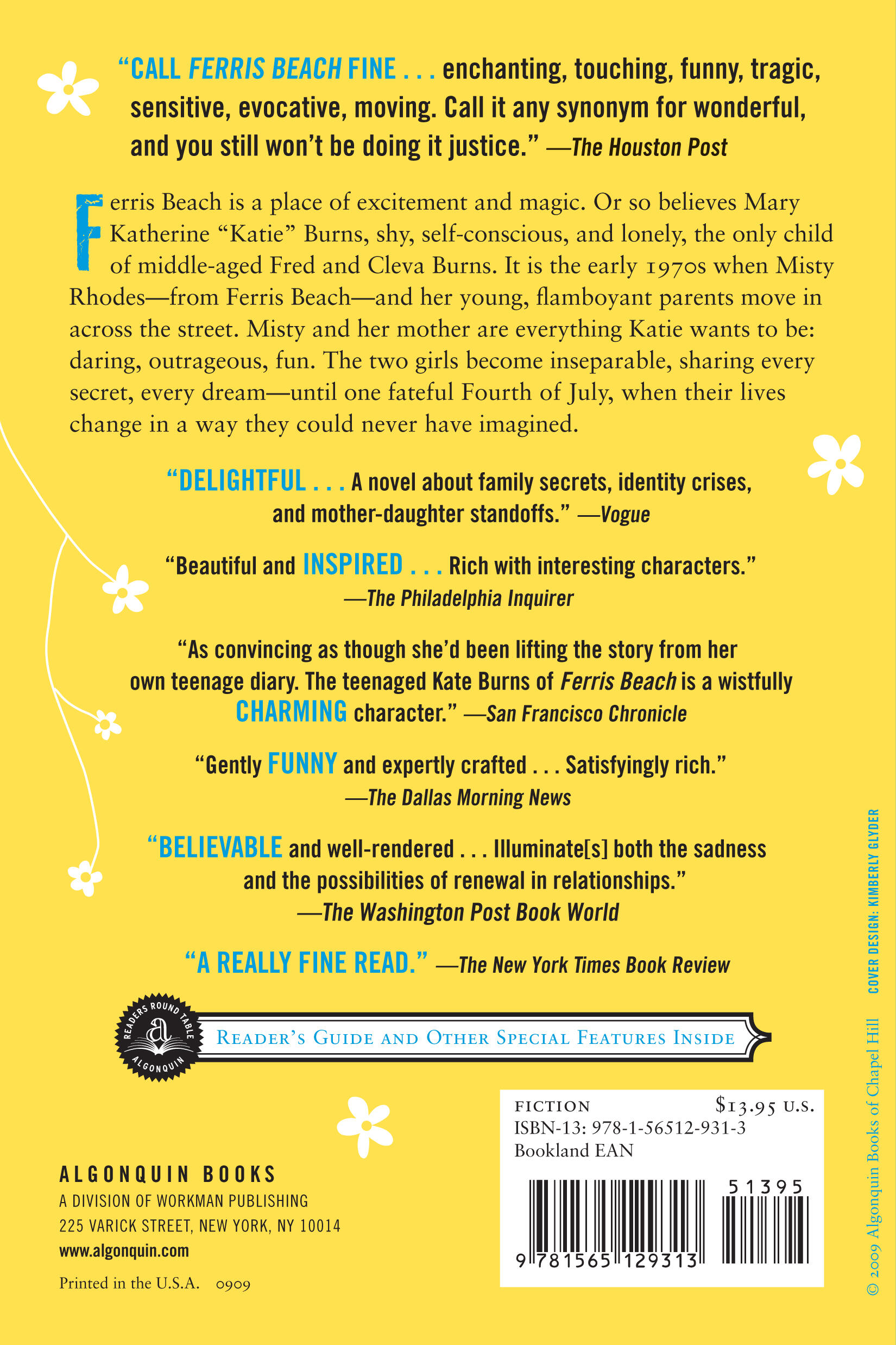 It is the early 1970s, and when the land across the road from the Burns’s historic house is sold to developers, Misty Rhodes—also from Ferris Beach—and her flamboyant parents move into the nearest newly built split-level. In contrast to Katie’s composed, reserved, practical mother, Misty and her mother are everything Katie wants to be: daring, outrageous, fun. The two girls become inseparable, sharing every secret, every dream—until one fateful Fourth of July, when their lives change in a way they could never have imagined.
