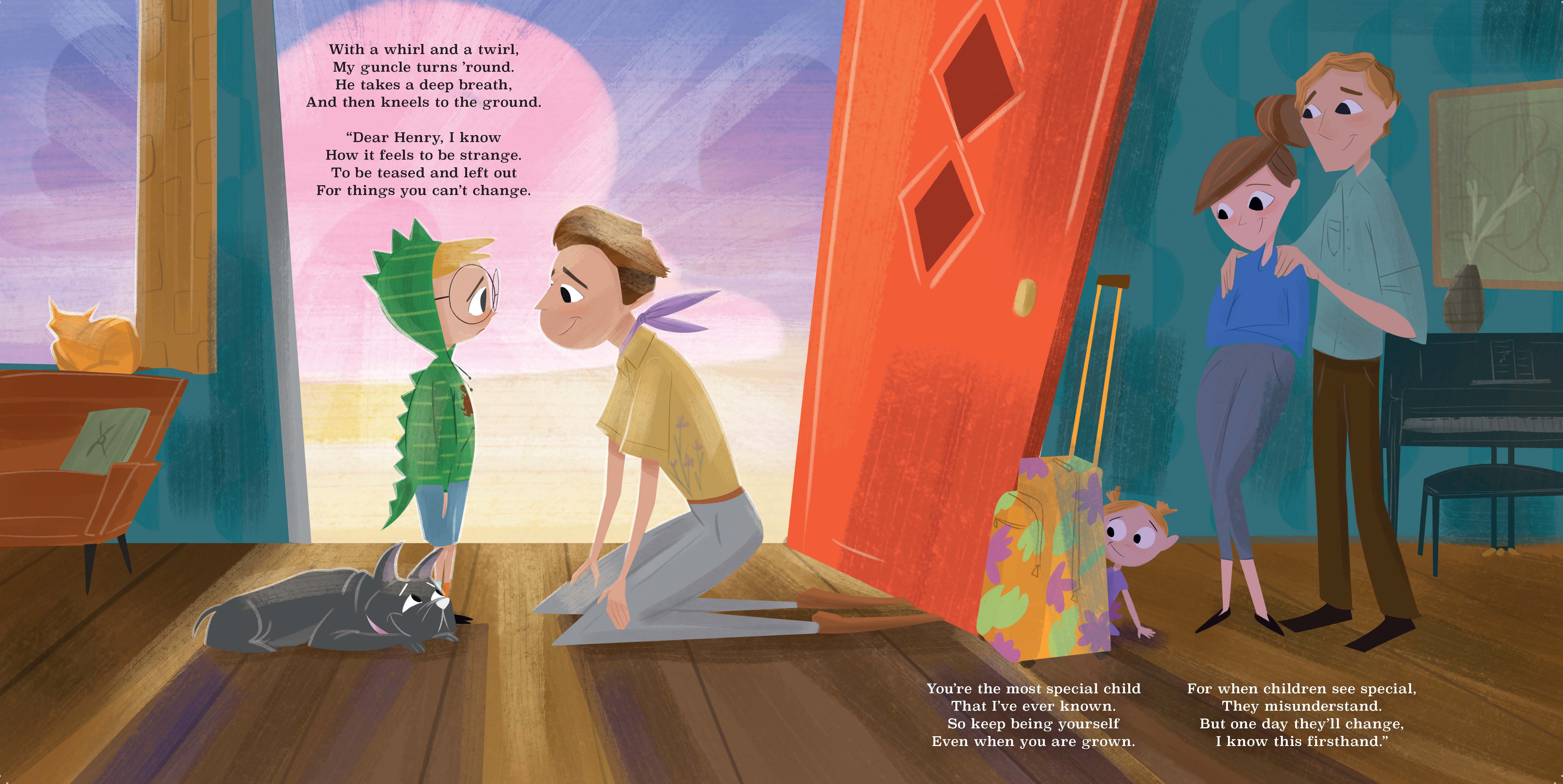 In this inclusive and heartwarming picture book by award-winning writer Jonathan Merritt, Henry Higgleston struggles with being deemed an oddball by the other kids at school. But when his fabulous gay uncle arrives for a weekend with his pup Jimmy Chew in tow, Guncle is on a mission to teach Henry that what makes him different makes him special. This joyful story that celebrates family and self-acceptance will make every kid feel seen and loved.