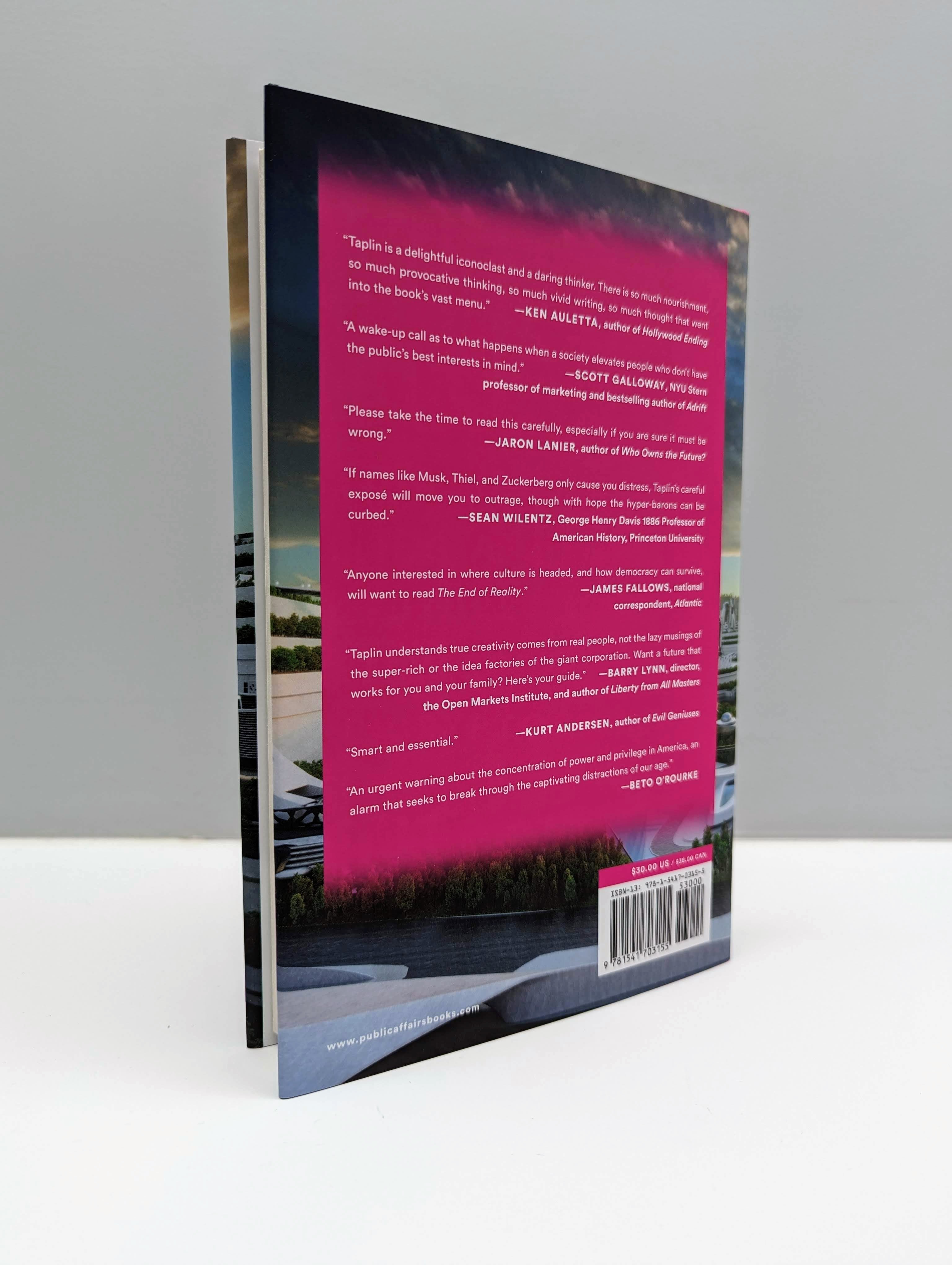 “Reading Taplin’s invigorating The End of Reality is akin to attending a huge outdoor feast. There is so much nourishment in his book, so much provocative thinking, so much vivid writing, so much thought that went into the book’s vast menu, that by the final page the reader is left in awe. Taplin is a delightful iconoclast and a daring thinker.”Ken Auletta, author of Hollywood Ending